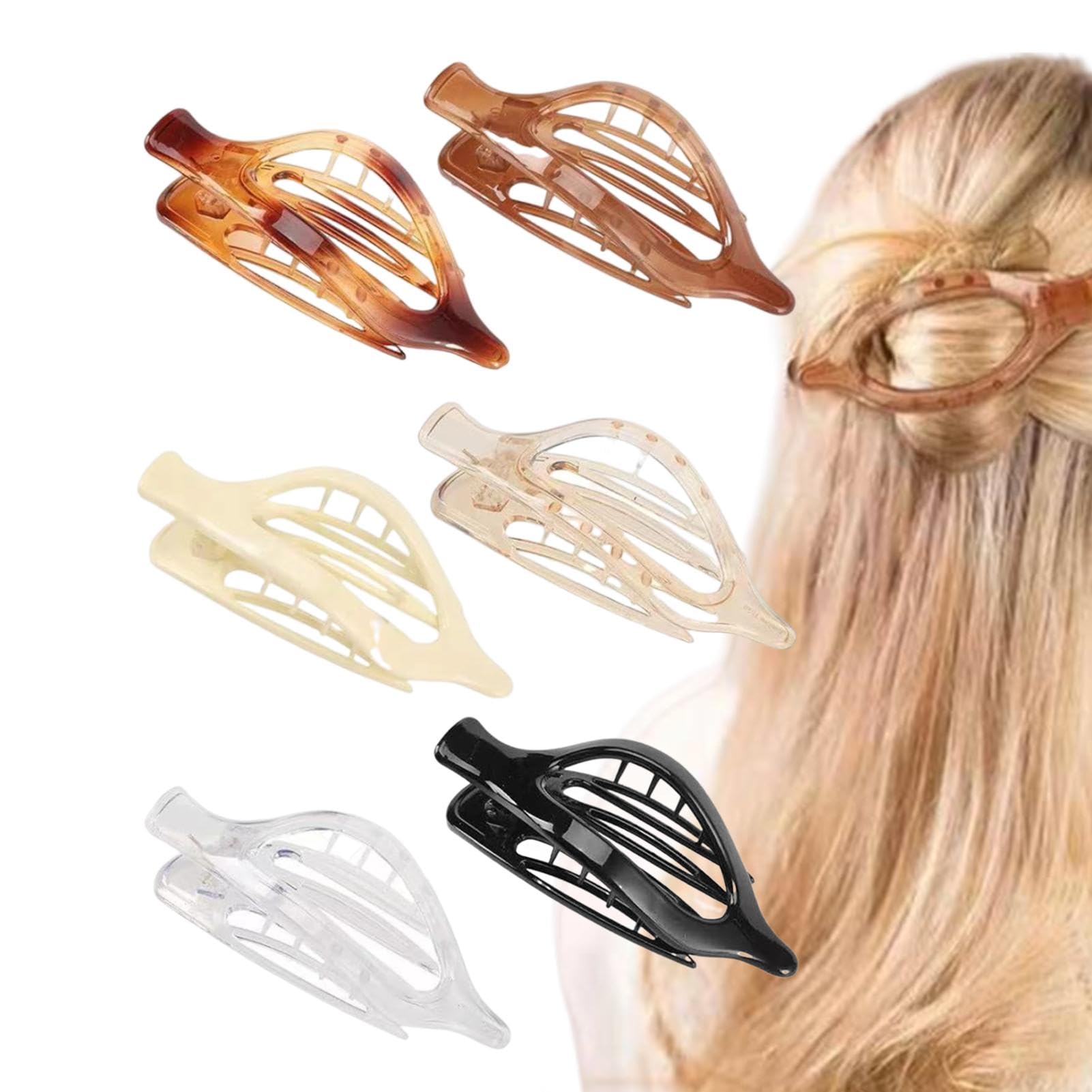 This duck billed hair clips are perfect for all hair types. With a wide clamp mouth and strong metal spring, they secure your hair without slipping. Perfect for face washing, beauty routines, cooking, sports, and more. Makes a for the fashion-forward individual in your life. Style: solid color (suit 8), transparent color (suit 10) Product size: about 11.5cm/4.53 inches : PC Packing List: 6* Flat Hair Claws