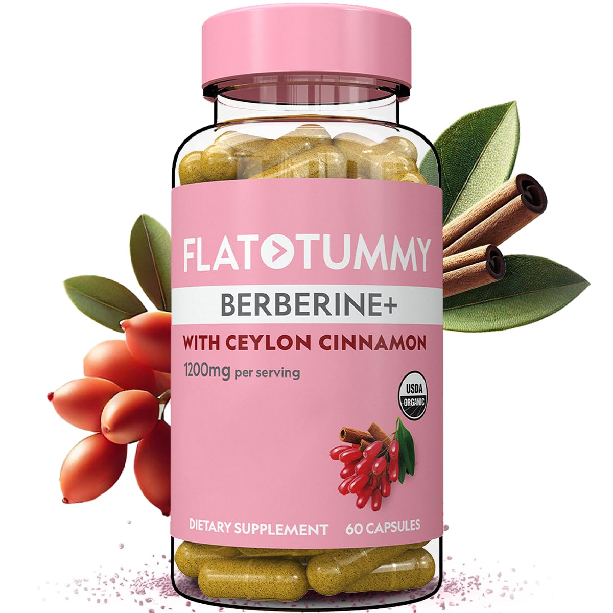 Our Flat Tummy Berberine supplement is packed with 1,200 mg of 4:1 potency berberine extract and enhanced with 250 mg of ceylon cinnamon per serving. Flat Tummy Berberine is also suitable as a post GLP-1 berberine supplement to help you continue on your journey. Each serving provides 1,200 mg of organic Berberine extract, sourced from Berberis aristata, traditionally used to enhance metabolic pathways and promote efficient nutrient processing. Complementing Berberine, we've included 250 mg of organic Ceylon Cinnamon, also known as "true cinnamon". This combination helps maintain stable energy and mood, reducing those irritable "hangry" moments. Our commitment to purity means Flat Tummy Berberine is free from fillers, additives, and excipients. It's organic, vegan-friendly, gluten-free, soy-free, and dairy-free, delivered in easy-to-swallow, tasteless vegetarian capsules made from organic pullulan. Elevate your health regimen with our premium Berberine Plus supplement!BY WOMEN, FOR WOMEN: Flat Tummy is all about helping women look and feel like the best versions of themselves with super-easy products like this Flat Tummy Berberine Plus supplement and much more. EASY-TO-SWALLOW, TASTELESS CAPSULES: Coming in organic vegetarian pullulan capsules, our organic Flat Tummy berberine supplement is convenient and easy to take, with no nasty aftertaste. PURE NATURAL INGREDIENTS, NO FILLERS: Our capsules are organic, vegan-friendly, gluten-free, soy-free, and dairy-free, ensuring a clean supplement with no fillers, additives, or excipients. PROMOTES METABOLIC HEALTH: With 1200mg of 4:1 berberine extract per serving, our Flat Tummy Berberine supplement aids in converting food into energy. When metabolic health is at its prime, your body can perform these functions efficiently. BERBERINE WITH CEYLON CINNAMON: Ever felt "hangry"? This irritable and unenergized feeling is brought to you by hormonal messengers from your body. Our Flat Tummy Berberine supplement is formulated with 250 mg of organic Ceylon Cinnamon, promoting stable energy and mood throughout the day. Flat Tummy Berberine is also suitable as a post GLP-1 berberine supplement to help you continue on your journey.