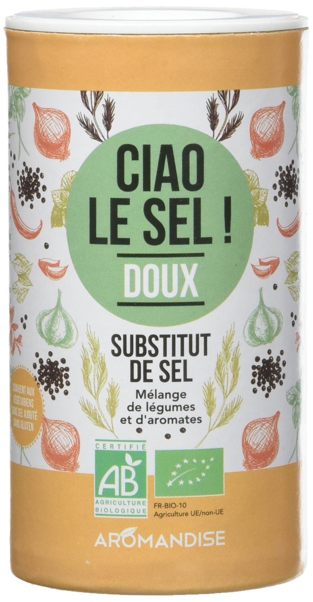 A clever blend of spices, vegetables, and condiments to reduce salt consumption in cooking. The components are chosen to provide the synergistic taste effect that salt provides. Bye salt! Mild is an aromatic and mild version. INGREDIENTS parsley , carrot , parsnip pieces , pumpkin seeds , tomato , onion pieces , sweet paprika , beetroot , lovage , turmeric , wild garlic , garlic . Product from organic farming INSTRUCTIONS FOR USE Use in cooking or as a table condiment. mild aromatic taste. convenient size. salt substitute. Un savant mélange d'épices, de légumes et de condiments pour diminuer la consommation de sel en cuisine. Les composants sont choisis pour apporter l'effet synergique gustatif que procure le sel. Ciao le sel ! Doux c'est une version aromatique et douce. INGRÉDIENTS persil , carotte , morceaux de panais , graines de courge , tomate , morceaux d'oignon , paprika doux , betterave , livèche , curcuma , ail des ours , ail . Produit issu de l'agriculture biologique MODE D'EMPLOI A utiliser dans la cuisine ou comme condiment de table. goût aromatique doux. format pratique. substitut de sel.