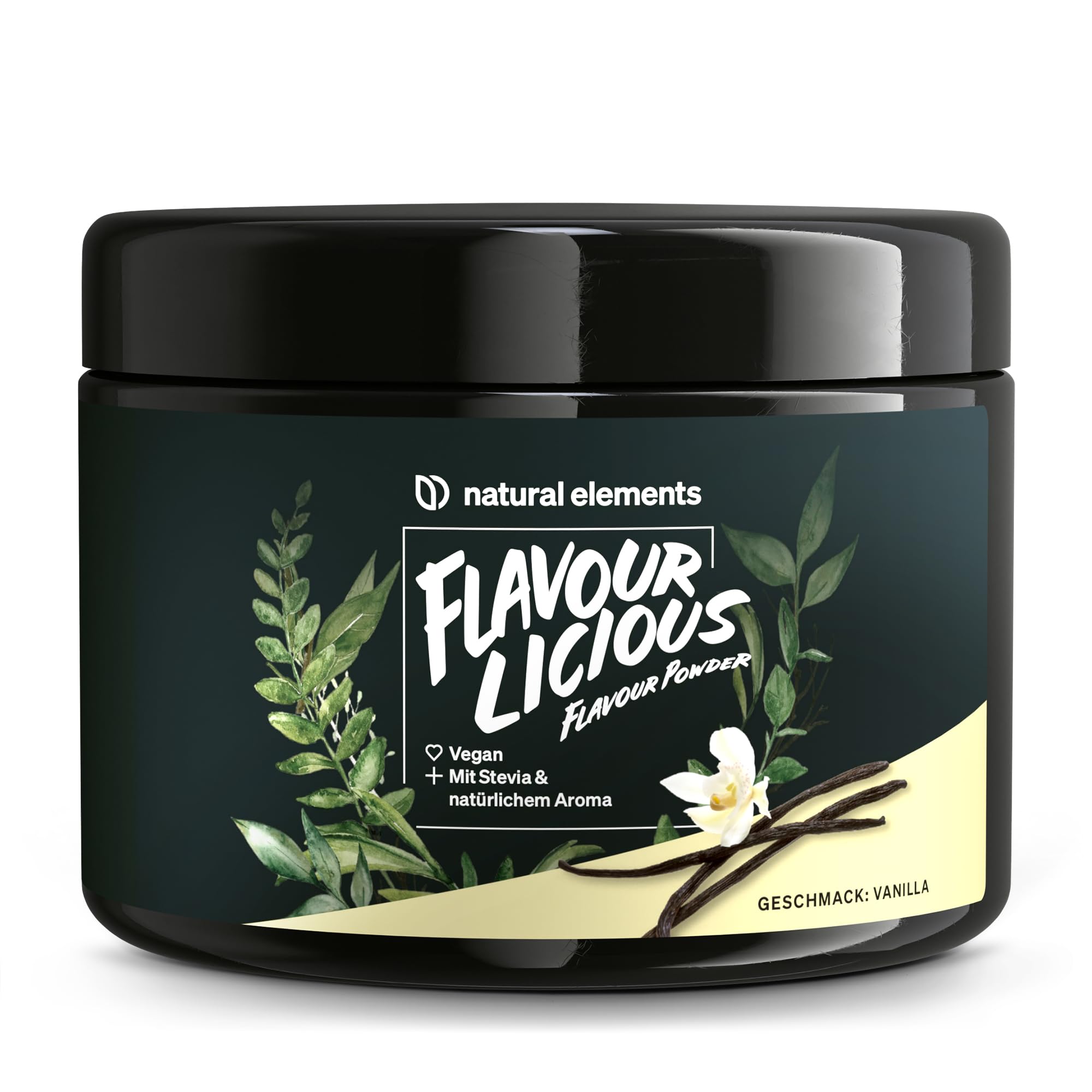The Natural Elements motto,Big words require big acts!Therefore, we have each of our production hinges checked thoroughly by independent laboratories in Germany.You can find the analysis certificate under ""Product guidelines and documents"".Elementary thought,We do not use sucralose like some manufacturers, but in our vegan vanilla powder only natural aroma and the sweetness from stevia.It is free of additives such as antioxidants, dyes, stabilizers or separators.Almost 67 pleasure portions,With daily consumption, the 200 g Flavourlicious Powder are enough for 2 months of vanilla happiness.The vegan powder contains black vanilla dots, is pleasantly sweet, but not too sweet and is easy to dissolve.Your powder for more varietyYour breakfast quarks or baking recipes could tolerate a little more taste?Or you generally want to save sugar?Our Chunky Flavor Powder contains only 6 kcal per portion (3 g) and brings delicious vanilla taste into your snack routine.Tasty nutritional buddy,With our vegan Flavourlicious vanilla flavoring powder, vanilla enjoyment becomes ease.Simply add 1 serving (3 g or more - depending on your taste) in approx. 200 g quarks, shakes & Co. and stir well.Perfect for everyone who wants to deliberately feast.DIE NATURAL ELEMENTS DEVISE,Große Worte erfordern große Taten! Deshalb lassen wir JEDE unserer Produktionschargen gründlich durch unabhängige Labore in Deutschland prüfen. Du findest das Analyse-Zertifikat unter „Produktleitfäden und Dokumente“. ELEMENTAR GEDACHT,Wir verwenden nicht wie einige Hersteller Sucralose, sondern in unser veganes Vanille-Pulver kommt nur natürliches Aroma und die Süße aus Stevia rein. Es ist frei von Zusätzen wie Antioxidationsmitteln, Farbstoffen, Stabilisatoren oder Trennmitteln. FAST 67 GENUSS-PORTIONEN,Bei täglichem Verzehr reichen die 200 g Flavourlicious Powder für 2 Monate Vanille-Glück. Das vegane Pulver enthält schwarze Vanille-Pünktchen, ist angenehm süß, aber nicht zu süß und lässt sich leicht auflösen. DEIN PULVER FÜR MEHR ABWECHSLUNG,Deine Frühstücksquarks oder Backrezepte könnten etwas mehr Geschmack vertragen? Oder du willst generell Zucker einsparen? Unser Chunky Flavour Powder enthält nur 6 kcal pro Portion (3 g) und bringt leckeren Vanillegeschmack in deine Snack-Routine. TASTY ERNÄHRUNGSBUDDY,Mit unserem veganen Flavourlicious Vanilla-Geschmackspulver wird Vanille-Genuss zur Leichtigkeit. Einfach 1 Portion (3 g oder mehr - je nach Geschmack) in ca. 200 g Quarks, Shakes & Co. geben und gut verrühren. Perfekt für alle, die bewusst schlemmen wollen.Flavourlicious Vanilla – 200 g Geschmackspulver – 6 kcal pro Portion (3g) – Flavour Powder ohne Sucralose – natürliche Aromen, Süße aus Stevia, vegan – in Deutschland produziert & laborgeprüft Vanille