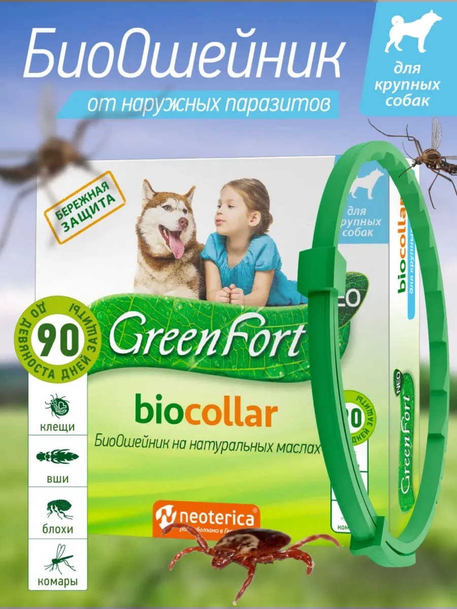 Ошейник от блох и клещей для крупных собак GreenFort 75 см