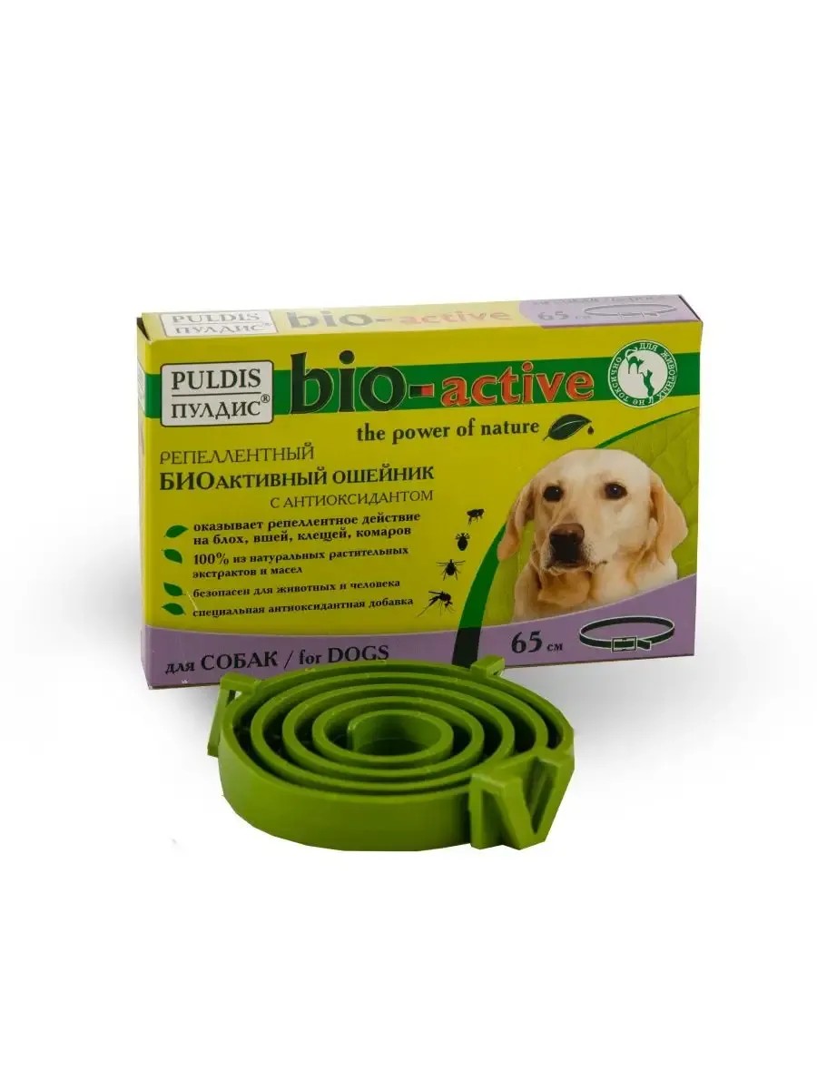 ПУЛДИС БИО ошейник для собак. Ошейники изготовлены по современной технологии, благодаря чему, они являются влагостойкими и обладают надежной системой фиксации, что делает процесс использования ошейника максимально простым. Оказывают репеллентное действие на блох, вшей, клещей и комаров за счет использования в составе специальных природных компонентов, имеющих специфический запах. Состоят из натуральных растительных и эфирных масел. Специальная антиоксидантная добавка усиливающая действие активных веществ и оказывающая благотворное действие на организм животного. Размеры и применение: Ошейник 65 см собаки крупных пород. Для достижения наилучшего эффекта заменить ошейник на новый через 8 12 недель. Нежелательно применять беременным и кормящим самкам, котятам моложе 4 недельного возраста и весом менее 1,5 кг.