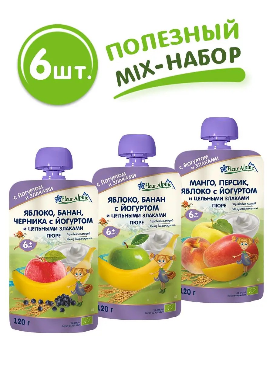 Набор детских пюре с йогуртом, 6 шт по 120 г