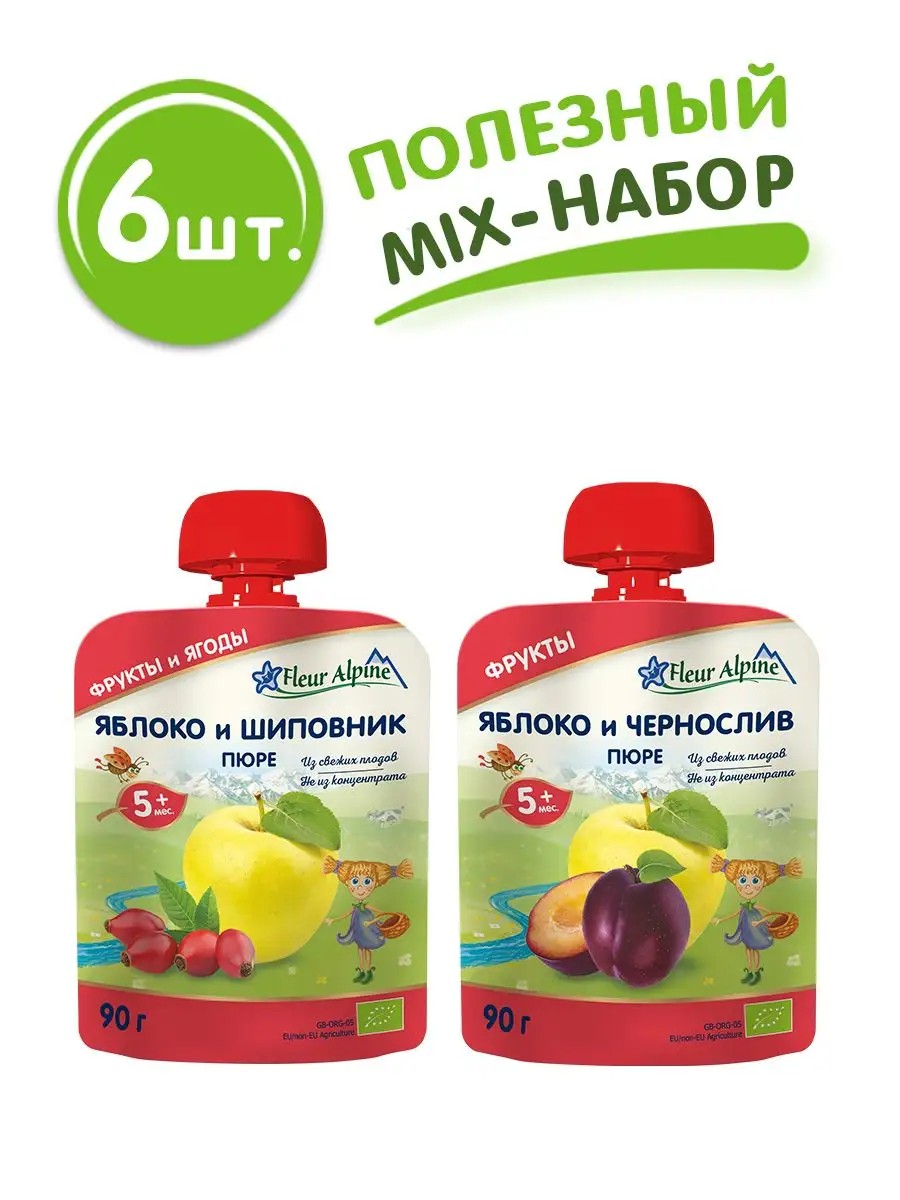 A set of baby purees: - Apple and prune puree (pouch), 5 months - 3 pcs. - Apple and rosehip puree (pouch), 5 months - 3 pcs.