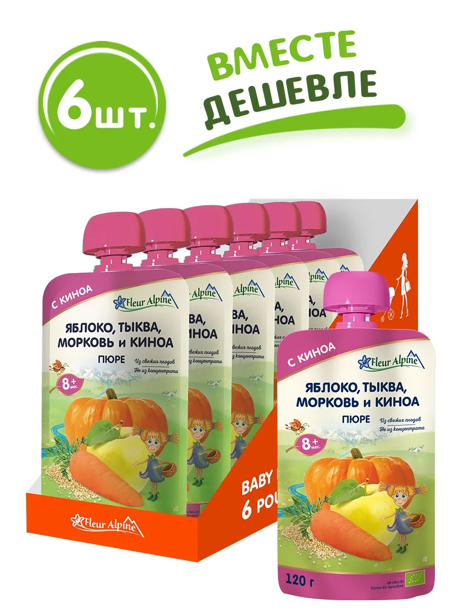Пюре детское ЯБЛОКО, ТЫКВА, МОРКОВЬ И КИНОА, с 8 мес, 6 шт по 120 г