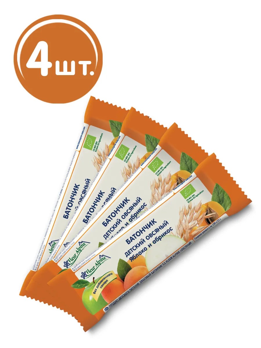 Батончик детский ОВСЯНЫЙ Fleur Alpine ЯБЛОКО и АБРИКОС понравится детям и их родителям: