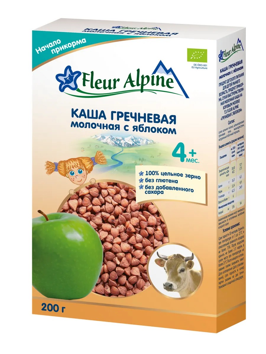 Полное наименование товараКаша гречневая FLEUR ALPINE молочная с яблоком, с 4 месяцев, 200г