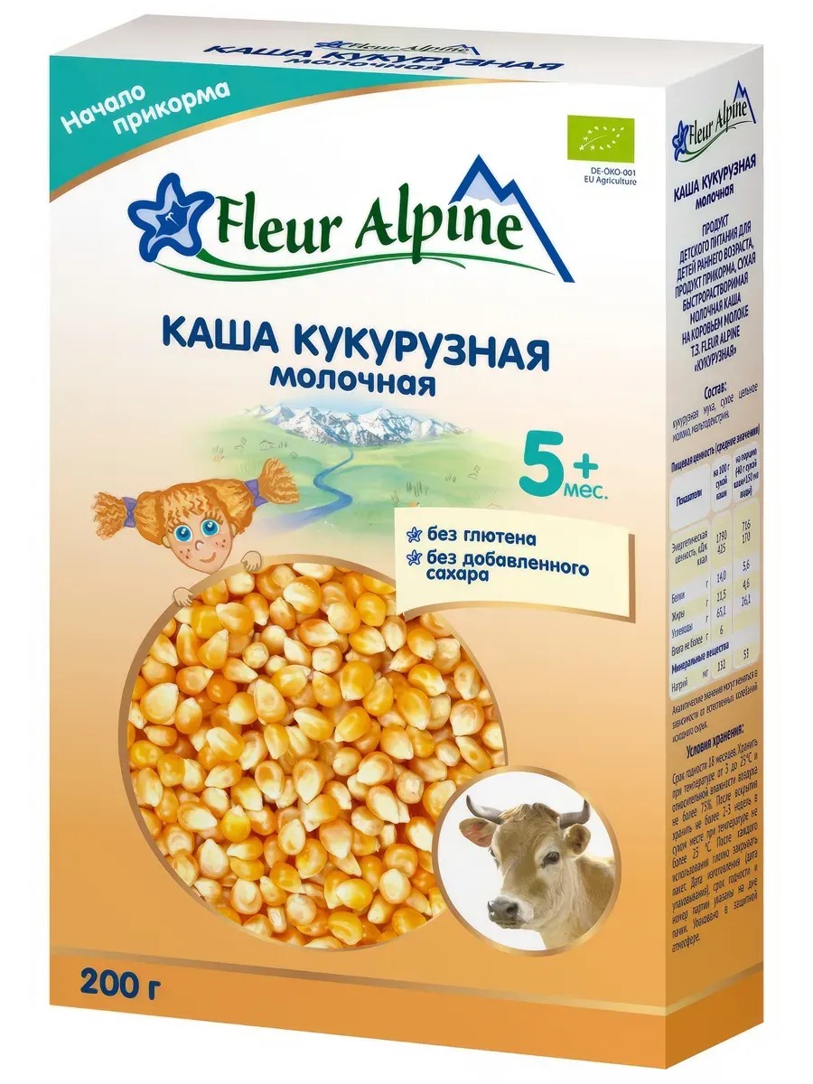 Необычно нежная молочная каша с изысканным послевкусием и ароматом кукурузы. Цельное молоко от коров, находящихся в свободном выпасе в Баварских Альпах, придает каше натуральную сладость, приятный молочный вкус и аромат, способствует длительному насыщению. Разводится легко, быстро и без комочков. Нежная, воздушная консистенция готовой каши в виде сугробиков напоминает снег, который ложится на поверхность небольшими пышными неровностями. При отсутствии у ребенка аллергии на молочный белок кукурузную молочную кашу можно вводить в качестве первого злакового прикорма. Цельное молоко коров из Баварских Альп в составе придает каше натуральную сладость, приятный молочный вкус и аромат, способствует длительному насыщению. Нежная, воздушная консистенция готовой каши в виде сугробиков напоминает снег, который ложится на поверхность небольшими пышными неровностями.