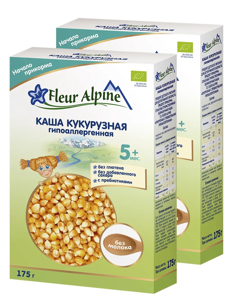 Каша безмолочная Fleur Alpine КУКУРУЗНАЯ с пребиотиками гипоаллергенная для детей старше 5 мес.: