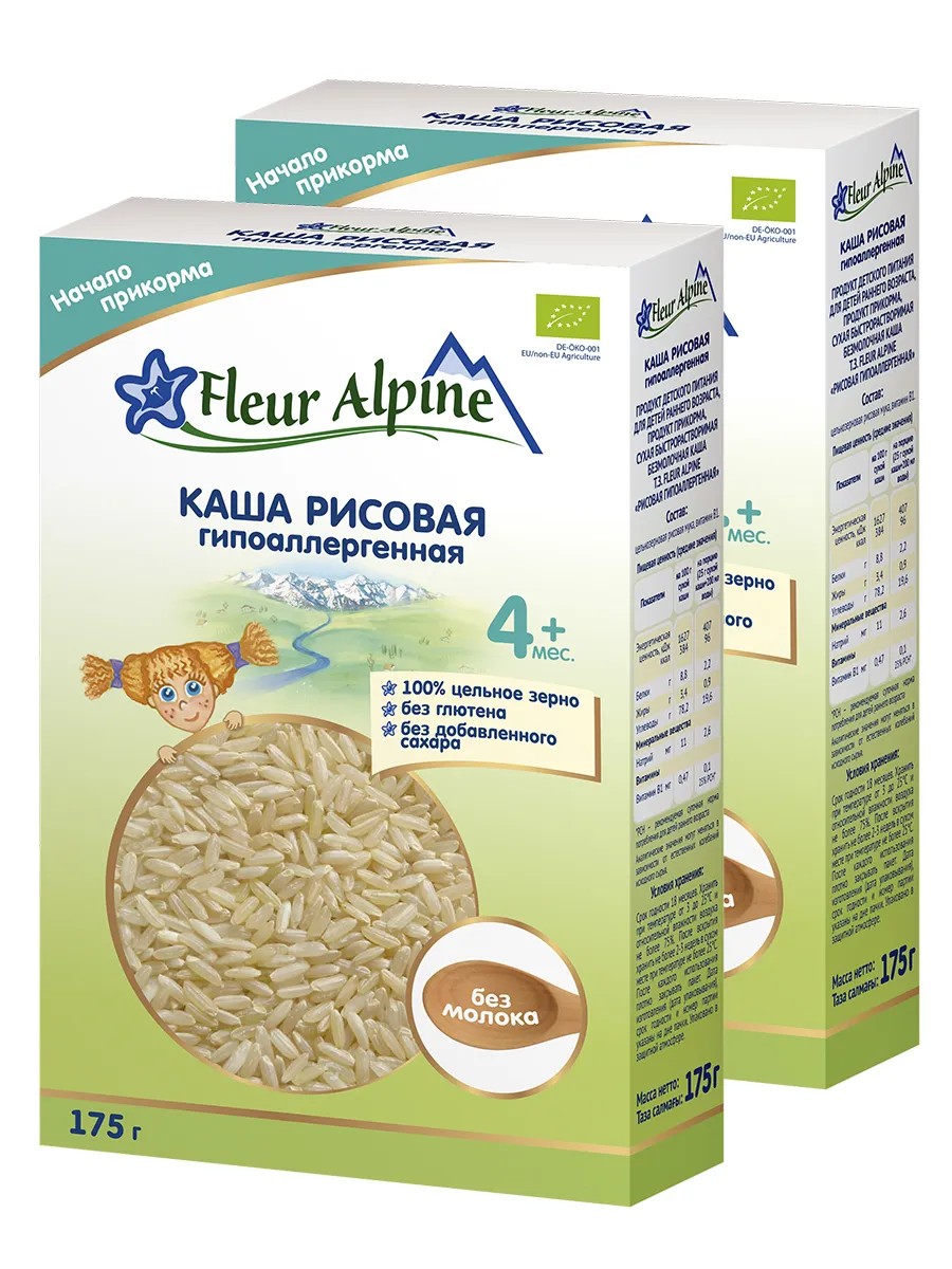 Каша безмолочная Fleur Alpine РИСОВАЯ гипоаллергенная для детей старше 4 мес.: