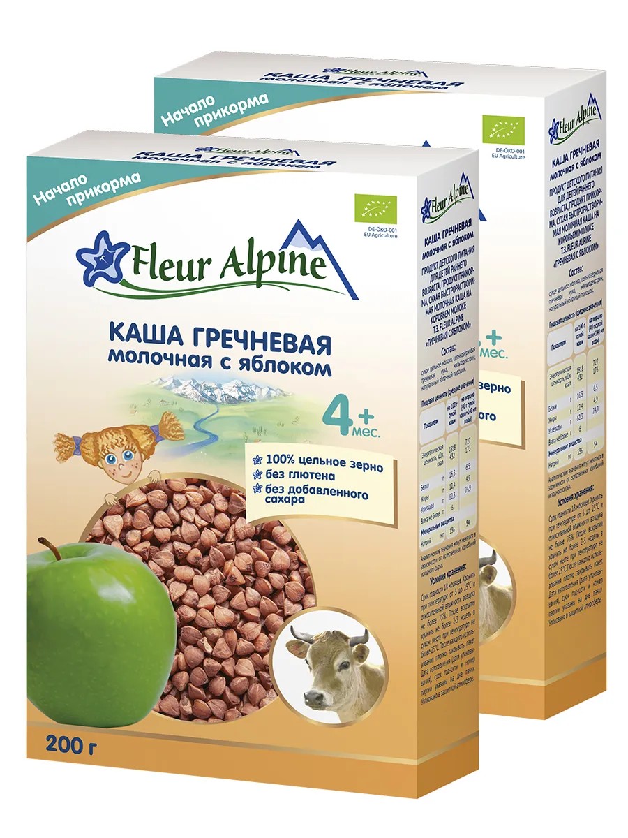 Каша молочная Fleur Alpine ГРЕЧНЕВАЯ С ЯБЛОКОМ для детей старше 4 мес.: