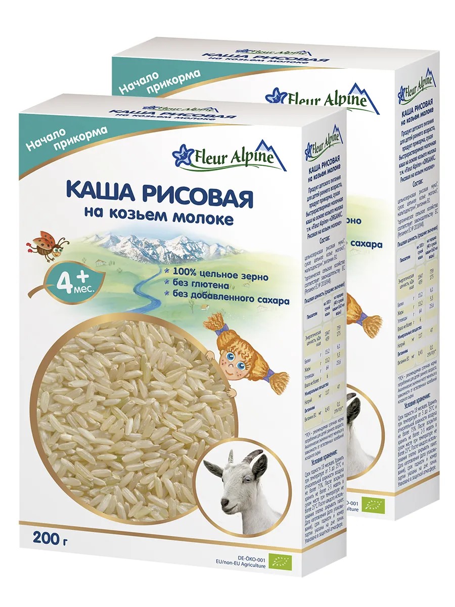 Каша на козьем молоке детская РИСОВАЯ, 4 мес, 2 шт. по 200 г