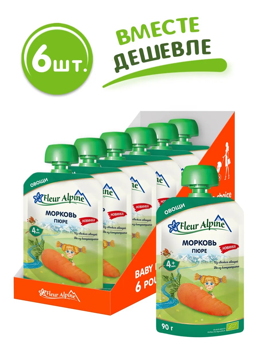Пюре Fleur Alpine МОРКОВЬ идеально для овощного прикорма и предназначено для питания детей старше 4 месяцев:
