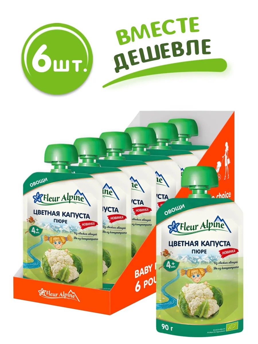 Пюре Fleur Alpine цветная капуста идеально для первого овощного прикорма и предназначено для питания детей старше 4 месяцев: