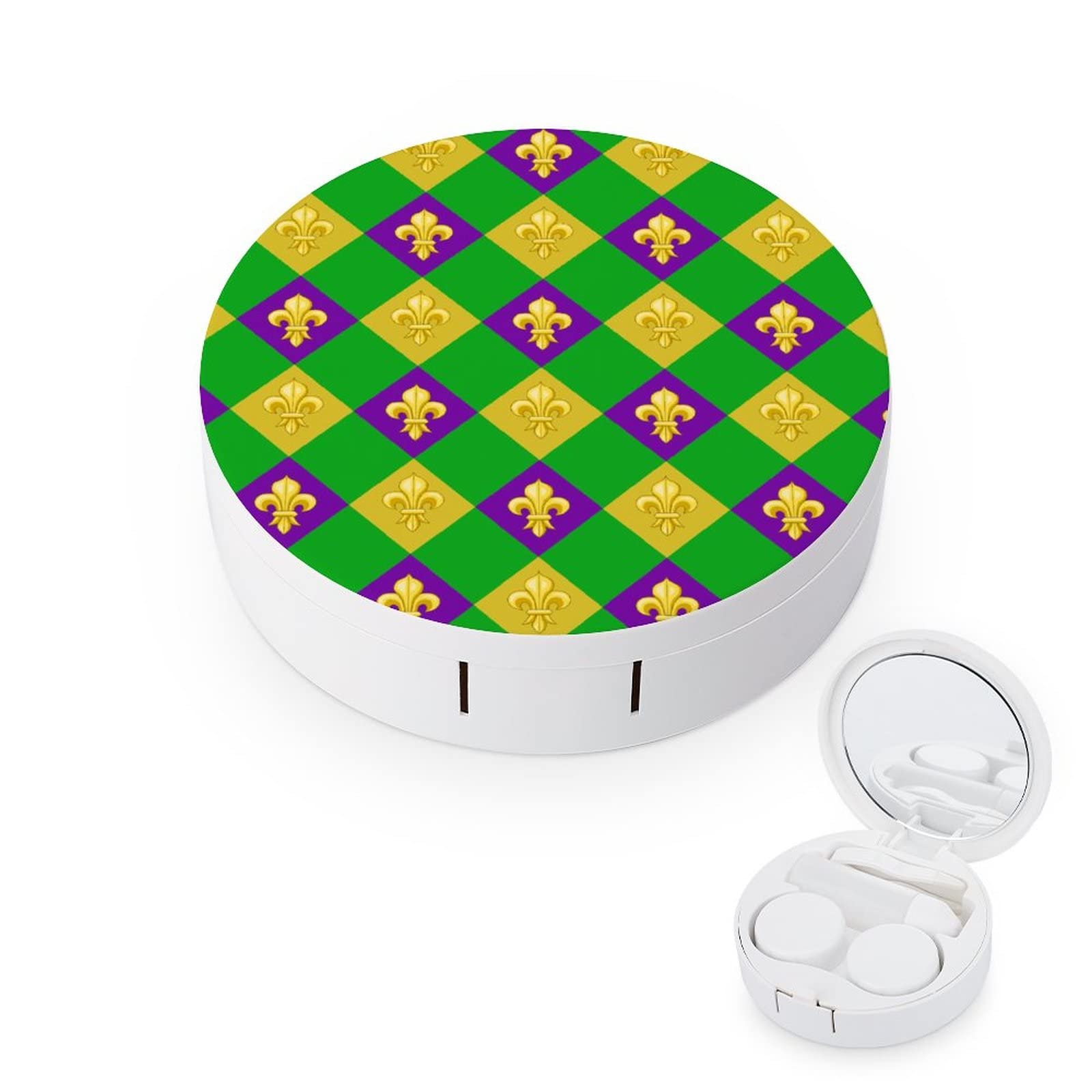 Fleur De Lis-Mardi Gras Round Case For Contact Lens Kit Storage Box with Mirror Printed