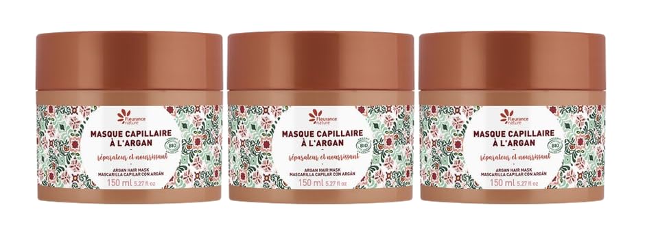 Fleurance Nature- Triplo Masque Capillaire l'Argan Bio- 150ml- Soin Capillaire femme certifi Bio Cosmos Ecocert- traitement Cheveux Secs et ab m s- Nourrit et hydrate- 25123 (3)