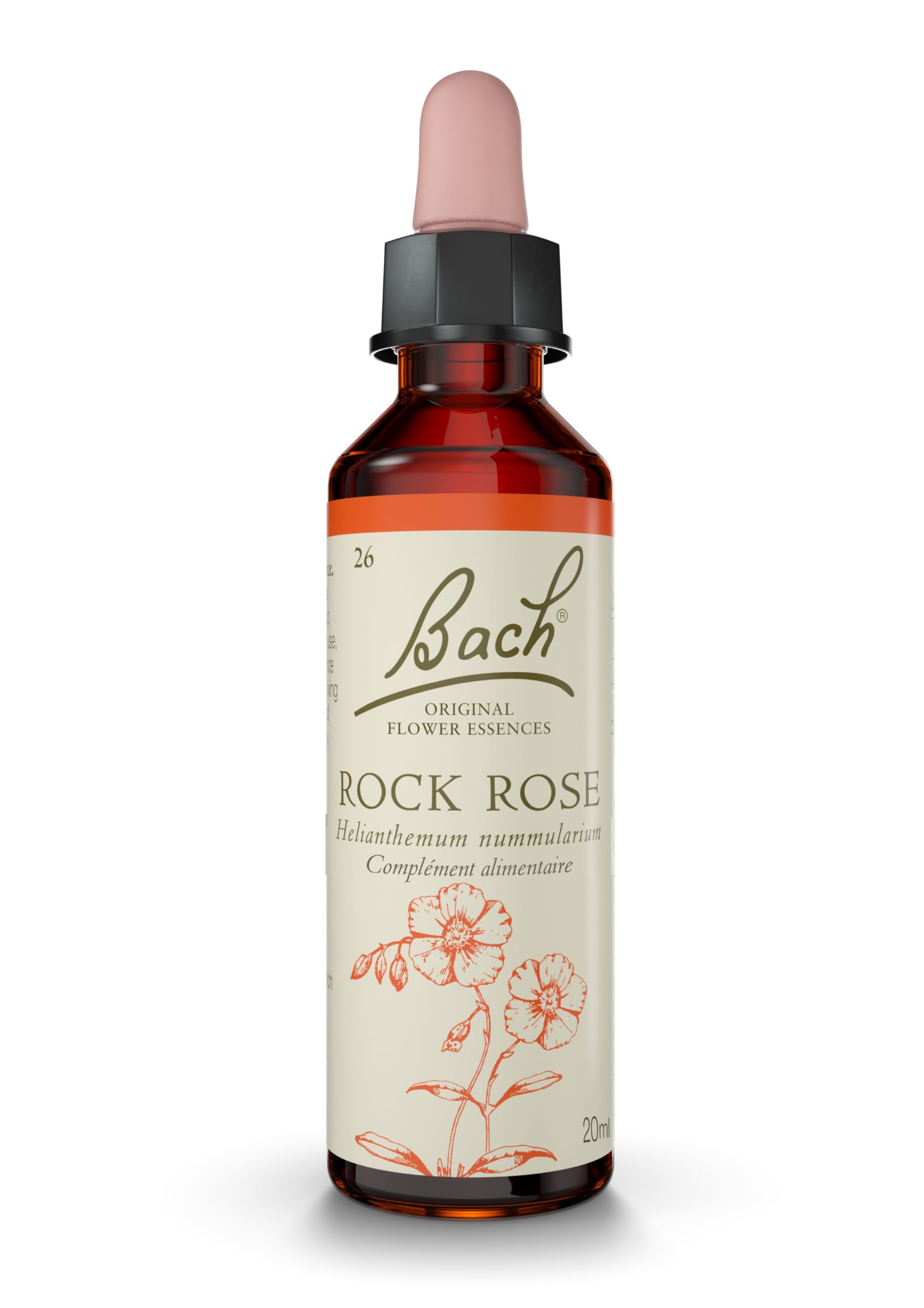 : Original Bach Flower Remedies come directly from Edward Bach's garden. A guarantee of quality and authenticity, they are certified by the Bach Centre and are the only ones authorized to bear the Bach signature. Original Bach Flower Remedies target all of an individual's fleeting and recurring emotions and contribute to daily emotional harmony. Food supplement. Ingredients: Grape alcohol 27 v v, aqueous dilution of Helianthemum Nummularium (L.) Mil. flowers (1 500 dilution). Directions for use: 2 drops on the tongue or in a glass of water 4 times a day. Do not exceed the stated daily dose. Safety Warning: Do not exceed the stated daily dose. A food supplement should not replace a balanced and varied diet and a healthy lifestyle. Keep out of reach of young children. Disclaimer: Directions for use: 2 drops in a glass of water or on the tongue 4 times a day. Do not exceed the stated daily dose. See the information sheet. See morePrecautions: A food supplement should not replace a healthy and varied diet. Keep out of reach of young children. Due to the presence of alcohol, this food supplement is not recommended for people suffering from alcoholism. The No. 1 brand of flower essences (worldwide and in France) and a pioneer in emotional well-being. Original Bach Flower Remedies are the only ones authorized to bear the signature of their creator and the only ones certified by the Bach Centre, thus guaranteeing their quality and traceability. How to use: 2 drops on the tongue or in a glass of water, 4 times a day. Non-habit forming. Do not exceed the stated daily dose. Rock Rose helps you overcome your fears, show courage, push your limits, and act bravely. When will Rock Rose help you? You feel paralyzed when you witness an accident. You freeze after receiving bad news. You are stuck on the tarmac before boarding the plane. Original Bach Flower Remedies offer emotional support to help you face the demands of daily life in a positive way. Rock Rose is the flower of courage for those who experience a feeling of panic that leaves them feeling helpless. When you feel overwhelmed by your worries, you feel paralyzed by a sense of immense fear, a feeling of your blood running cold.Description du produit Les Fleurs de Bach Original proviennent directement du jardin d'Edward Bach. Gage de qualité et d'authenticité, elles sont certifiées par le Centre Bach et sont les seules autorisées à porter la signature Bach. Les Fleurs de Bach Original ciblent toutes les émotions passagères et régulières de l'individu et participent à l'harmonie émotionnelle au quotidien. Complément alimentaire. Ingrédients Ingredients: alcool de raisin a 27 v v, dilution aqueuse de fleurs de Helianthemum Nummularium (L.) Mil. dilution 1 500). P.when('A').execute(function(A) { A.on('a:expander:toggle_description:toggle:collapse', function(data) { window.scroll(0, data.expander. expander[0].offsetTop-100) }) }) Mode d'emploi 2 gouttes sur la langue ou dans un verre d'eau 4 fois par jour. Ne pas dépasser la dose journalière indiquée. Avertissement De Sûreté Warnings: Ne pas dépasser la dose journalière indiquée. Un complément alimentaire ne doit pas remplacer une amentation équilibrée, variée et un mode de vie sain. Tenir hors de la portée des jeunes enfants. Clause de non-garantie Conseils d utilisation, nbsp nbsp 2 gouttes dans un verre d eau ou sur la langue 4 fois par jour, Ne pas d eacute passer la dose journali egrave re indiqu eacute e, Voir la fiche conseil Voir plusPrécautions : Un complément alimentaire ne doit pas remplacer une alimentation saine et variée. Tenir hors de portée des jeunes enfants. En raison de la présence d'alcool, ce complément alimentaire est déconseillé aux personnes souffrant d'éthylisme. Marque N 1 des élixirs floraux (dans le Monde et en France) et pionnière du bien-être émotionnel. Les Fleurs de Bach Original sont les seules autorisées à porter la signature de son créateur et les seules certifiées par le Centre Bach, garantissant ainsi leur qualité et leur traçabilité. Mode d'utilisation : 2 gouttes sur la langue ou dans un verre d'eau, 4 fois par jour. Sans accoutumance. Ne pas dépasser la dose journalière indiquée. Rock Rose contribue à surpasser ses peurs, faire preuve de courage, se dépasser et agir avec bravoure. Dans quel cas Rock Rose vous aidera ? Vous êtes comme paralysé lorsque vous êtes témoin d'un accident. Vous êtes figé après l'annonce d'une mauvaise nouvelle. Vous êtes bloqué sur le tarmac avant de monter dans l'avion. Les Fleurs de Bach Original apportent un soutien émotionnel pour faire face aux exigences de la vie quotidienne de façon positive. Rock Rose est la fleur du Courage pour ceux qui ont une impression de panique qui les rendent impuissant. Lorsque vous avez le sentiment que vos soucis prennent le dessus, vous avez l'impression d'être bloqué par une sensation de crainte immense, un ressenti de sang qui se glace.Fleurs de Bach Original, Rock Rose, No 26, pour plus de courage, aide à surpasser ses peurs. Elixir floral naturel pour le bien-être émotionnel. Compte-Gouttes 20ml, Vegan