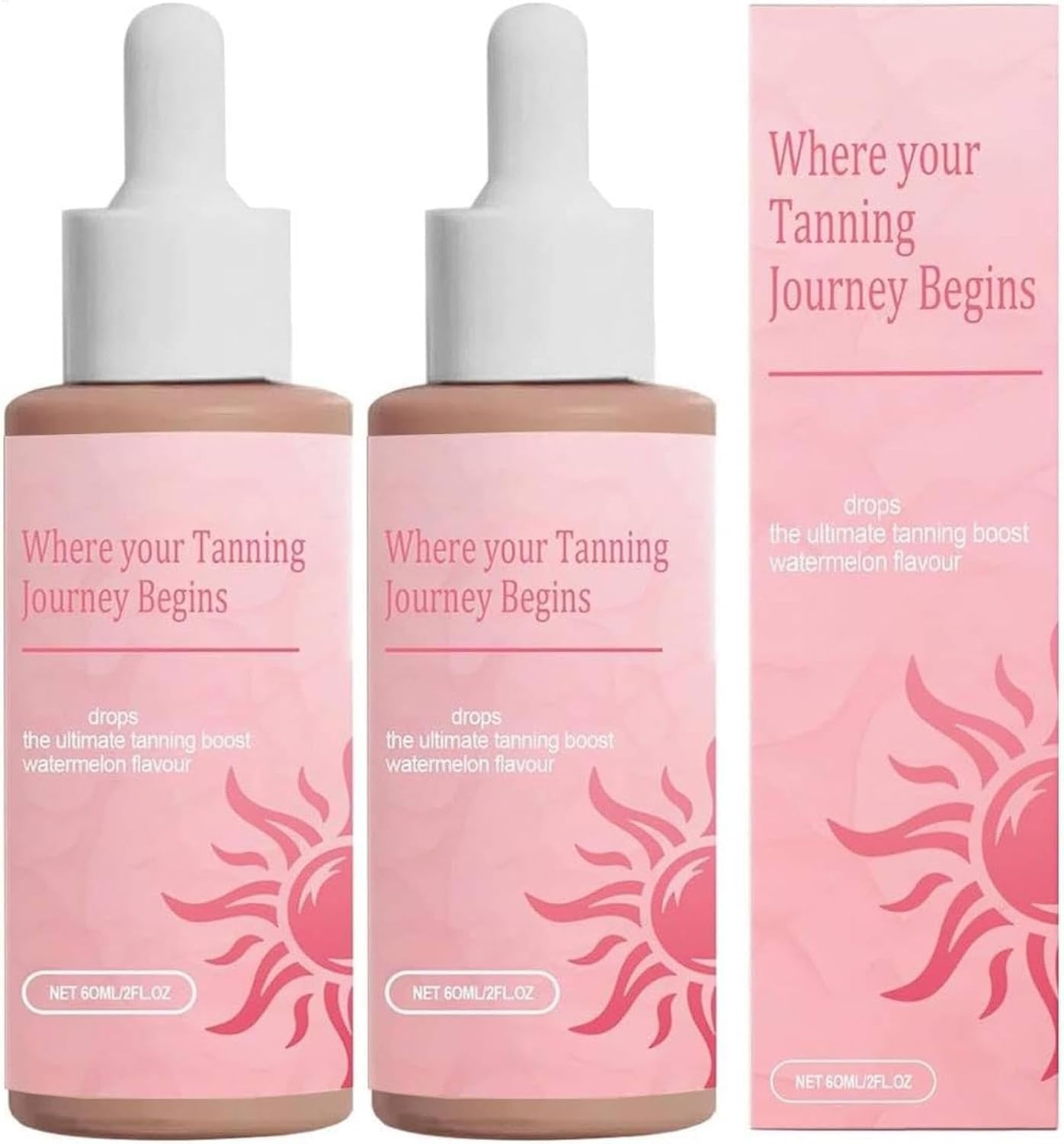 Specifications: Name: Sunless Tanning Drops Net Content: 60 ml 2 fl oz Shelf Life: 3 Years Suitable Skin Type: All Skin Types List: 2 Pcs Sunless Tanning Drops Usage Instructions: - For external use only. -Avoid contact with eyes. - Keep away from naked flames or direct heat sources. INSTRUCTIONS FOR USE Instructions for use: - For external use only. - Avoid contact with the eyes. - Keep away from naked flames or direct heat sources. SAFETY WARNING For external use only See moreGradual and Long-Lasting Results: Enjoy a natural-looking tan that fades gradually over time, similar to a real sun tan. Continue using the drops to maintain your glow or allow it to naturally fade away, ensuring a long-lasting, radiant complexion. Safe, Natural Ingredients: Crafted with high-quality, all-natural ingredients, the tanning drops are safe for daily consumption and free from harsh chemicals. They provide a gentle and effective tanning solution while nourishing your skin from the inside out. Nourishing and Hydrating Formula: Infused with skin-loving ingredients, these tanning drops not only promote a healthy glow but also support skin hydration and elasticity, ensuring a smooth, vibrant complexion without streaks or an orange tint. Effortless Daily Tanning Routine: Easily integrate the tanning drops into your daily routine by adding them to your favorite beverage. With consistent use, most users notice a gradual tan developing within 5-7 days, giving you full control over your desired shade. Natural Sun-Kissed Glow Without Sun Exposure: Achieve a radiant, sun-kissed glow naturally by enhancing melanin production, offering a beautiful bronzed look without the harmful effects of UV rays. Customize the intensity by adjusting the number of drops you use.2025 New Advanced Sunless Tanning Drops to Drink, Enhances Natural Tan, Promotes Skin Health and Pigmentation, Moisturizes Skin, No Streaks, Sun-Kissed Glow (2 PCS) Specifications: Name: Sunless Tanning Drops Net Content: 60 ml 2 fl oz Shelf Life: 3 Years Suitable Skin Type: All Skin Types List: 2 Pcs Sunless Tanning Drops Usage Instructions: - For external use only. - Avoid contact with eyes. - Keep away from naked flames or direct heat sources. GEBRUIKSAANWIJZING Gebruiksaanwijzing: - Alleen voor uitwendig gebruik. - Vermijd contact met de ogen. - Blijf uit de buurt van naakte vlammen of directe warmtebronnen. VEILIGHEIDSWAARSCHUWING For external use only Meer bekijkenGradual and Long-Lasting Results: Enjoy a natural-looking tan that fades gradually over time, similar to a real sun tan. Continue using the drops to maintain your glow or allow it to naturally fade away, ensuring a long-lasting, radiant complexion. Safe, Natural Ingredients: Crafted with high-quality, all-natural ingredients, the tanning drops are safe for daily consumption and free from harsh chemicals. They provide a gentle and effective tanning solution while nourishing your skin from the inside out. Nourishing and Hydrating Formula: Infused with skin-loving ingredients, these tanning drops not only promote a healthy glow but also support skin hydration and elasticity, ensuring a smooth, vibrant complexion without streaks or an orange tint. Effortless Daily Tanning Routine: Easily integrate the tanning drops into your daily routine by adding them to your favorite beverage. With consistent use, most users notice a gradual tan developing within 5-7 days, giving you full control over your desired shade. Natural Sun-Kissed Glow Without Sun Exposure: Achieve a radiant, sun-kissed glow naturally by enhancing melanin production, offering a beautiful bronzed look without the harmful effects of UV rays. Customize the intensity by adjusting the number of drops you use.