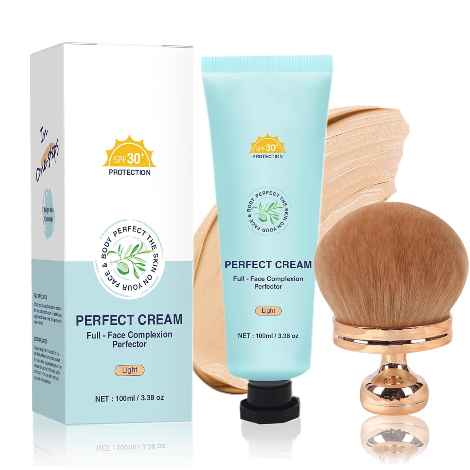 DESCRIPTION DU PRODUIT DESCRIPTION DU PRODUIT Specification: Name: Body Coverage Perfector with SPF 30 Net Content: 100ml Color: Light Medium Tan Rich Shelf Life: 3 Years Applicable Skin Type: Universal Package Include: 1 Body Coverage Perfector 1 Body Makeup Brush Transform your complexion with this innovative CC cream that combines the best of skincare and makeup. This multitasking formula provides hydrating full coverage while enhancing your natural radiance with a subtle, luminous finish. The waterproof, transfer-resistant formula stays put throughout your day, making it perfect for any occasion. With SPF 30 protection, it shields your skin from sun damage while evening out skin tone and concealing imperfections. The lightweight texture blends seamlessly into skin, creating a natural-looking finish that never feels heavy or cakey. AVERTISSEMENT DE SÉCURITÉ For external use onlyVersatile Application and Multi-Benefit Formula: Combines the benefits of a concealer, foundation, and highlighter, suitable for use on both face and body with buildable coverage and a luminous glow. Waterproof and Transfer-Resistant: The transfer-proof and waterproof formula ensures long-lasting coverage that withstands humidity, light rain, or active days without smudging or fading. Hydrating, Long-Lasting Wear: Offers 12-hour hydration with a moisturizing formula that keeps the skin comfortable and looking fresh, preventing a dry or cakey appearance. SPF Protection: Formulated with SPF 30 to protect the skin from harmful UV rays while evening out skin tone. Full Coverage and Natural Finish: Provides complete, seamless coverage that conceals imperfections while maintaining a natural, skin-like finish for all skin types.Body Coverage Perfector with SPF 30 , 12H Hydrating CC Cream, Full Coverage Foundation Concealer Cream, Waterproof, Transfer-Resistant, Long-Lasting Skin Tint (Light)DESCRIPTION DU PRODUIT DESCRIPTION DU PRODUIT Specification: Name: Body Coverage Perfector with SPF 30 Net Content: 100ml Color: Light Medium Tan Rich Shelf Life: 3 Years Applicable Skin Type: Universal Package Include: 1 Body Coverage Perfector 1 Body Makeup Brush Transform your complexion with this innovative CC cream that combines the best of skincare and makeup. This multitasking formula provides hydrating full coverage while enhancing your natural radiance with a subtle, luminous finish. The waterproof, transfer-resistant formula stays put throughout your day, making it perfect for any occasion. With SPF 30 protection, it shields your skin from sun damage while evening out skin tone and concealing imperfections. The lightweight texture blends seamlessly into skin, creating a natural-looking finish that never feels heavy or cakey. AVERTISSEMENT DE SÉCURITÉ For external use onlyVersatile Application and Multi-Benefit Formula: Combines the benefits of a concealer, foundation, and highlighter, suitable for use on both face and body with buildable coverage and a luminous glow. Waterproof and Transfer-Resistant: The transfer-proof and waterproof formula ensures long-lasting coverage that withstands humidity, light rain, or active days without smudging or fading. Hydrating, Long-Lasting Wear: Offers 12-hour hydration with a moisturizing formula that keeps the skin comfortable and looking fresh, preventing a dry or cakey appearance. SPF Protection: Formulated with SPF 30 to protect the skin from harmful UV rays while evening out skin tone. Full Coverage and Natural Finish: Provides complete, seamless coverage that conceals imperfections while maintaining a natural, skin-like finish for all skin types.