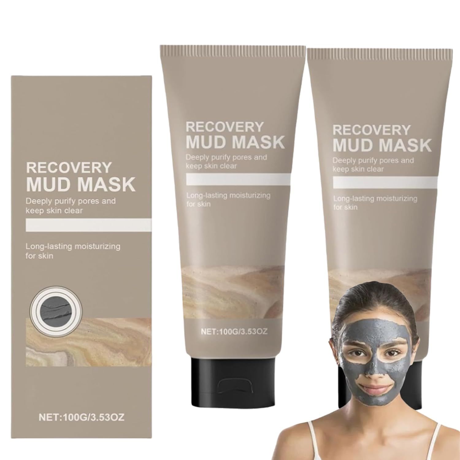 Specification: - Name: Recovery Mud Mask - Weight: 100g - Shelf Life: 3 Years - Features: Moisturizing, gentle exfoliation, and cleaning Package Includes: 2 x Cleansing Facial Mask Features: - Moisturizing - Deep pore cleaning - Hydrating - Suitable for all skin types - Skin repairing - Natural ingredients VEILIGHEIDSWAARSCHUWING Do Not Expose This Product to Direct Sunlight or High Temperature to Avoid Affecting Its Quality and Safety Performance.Easy to Use and Gentle Formula: With a creamy and smooth texture, the masks are easy to apply and rinse off. They do not contain harsh ingredients, artificial colors, or fragrances, making them gentle on all skin types. Revitalizing and Anti-Aging: The masks promote skin cell renewal, helping to diminish signs of aging such as fine lines and dullness, resulting in a more vibrant, rejuvenated, and youthful-looking complexion. Moisturizing and Soothing: Enriched with natural plant ingredients like Centella Asiatica, Tea Tree, and Fig, the masks provide intense hydration and soothing effects, making them suitable for sensitive skin and helping to restore the skin's moisture barrier. Oil Control and Pore Minimization: These masks are designed to absorb excess oil and regulate sebum production, helping to clear oily skin and reduce the appearance of pores for a more flawless complexion. Deep Cleansing and Exfoliation: The mud masks offer deep cleansing by penetrating pores to remove dirt, sebum, and impurities. They also provide gentle exfoliation to remove dead skin cells, revealing a smoother and more refined skin texture.Recovery Mud Mask – Deep Cleansing Hydrating with Boryeong Mud, Relief Korean Mud Clay Face Mask, Hydrating Moisturizing Deep Pore Cleanser, Oil Control for All Skin Types (2 Pcs) Specification: - Name: Recovery Mud Mask - Weight: 100g - Shelf Life: 3 Years - Features: Moisturizing, gentle exfoliation, and cleaning Package Includes: 2 x Cleansing Facial Mask Features: - Moisturizing - Deep pore cleaning - Hydrating - Suitable for all skin types - Skin repairing - Natural ingredients VEILIGHEIDSWAARSCHUWING Do Not Expose This Product to Direct Sunlight or High Temperature to Avoid Affecting Its Quality and Safety Performance.Easy to Use and Gentle Formula: With a creamy and smooth texture, the masks are easy to apply and rinse off. They do not contain harsh ingredients, artificial colors, or fragrances, making them gentle on all skin types. Revitalizing and Anti-Aging: The masks promote skin cell renewal, helping to diminish signs of aging such as fine lines and dullness, resulting in a more vibrant, rejuvenated, and youthful-looking complexion. Moisturizing and Soothing: Enriched with natural plant ingredients like Centella Asiatica, Tea Tree, and Fig, the masks provide intense hydration and soothing effects, making them suitable for sensitive skin and helping to restore the skin's moisture barrier. Oil Control and Pore Minimization: These masks are designed to absorb excess oil and regulate sebum production, helping to clear oily skin and reduce the appearance of pores for a more flawless complexion. Deep Cleansing and Exfoliation: The mud masks offer deep cleansing by penetrating pores to remove dirt, sebum, and impurities. They also provide gentle exfoliation to remove dead skin cells, revealing a smoother and more refined skin texture.