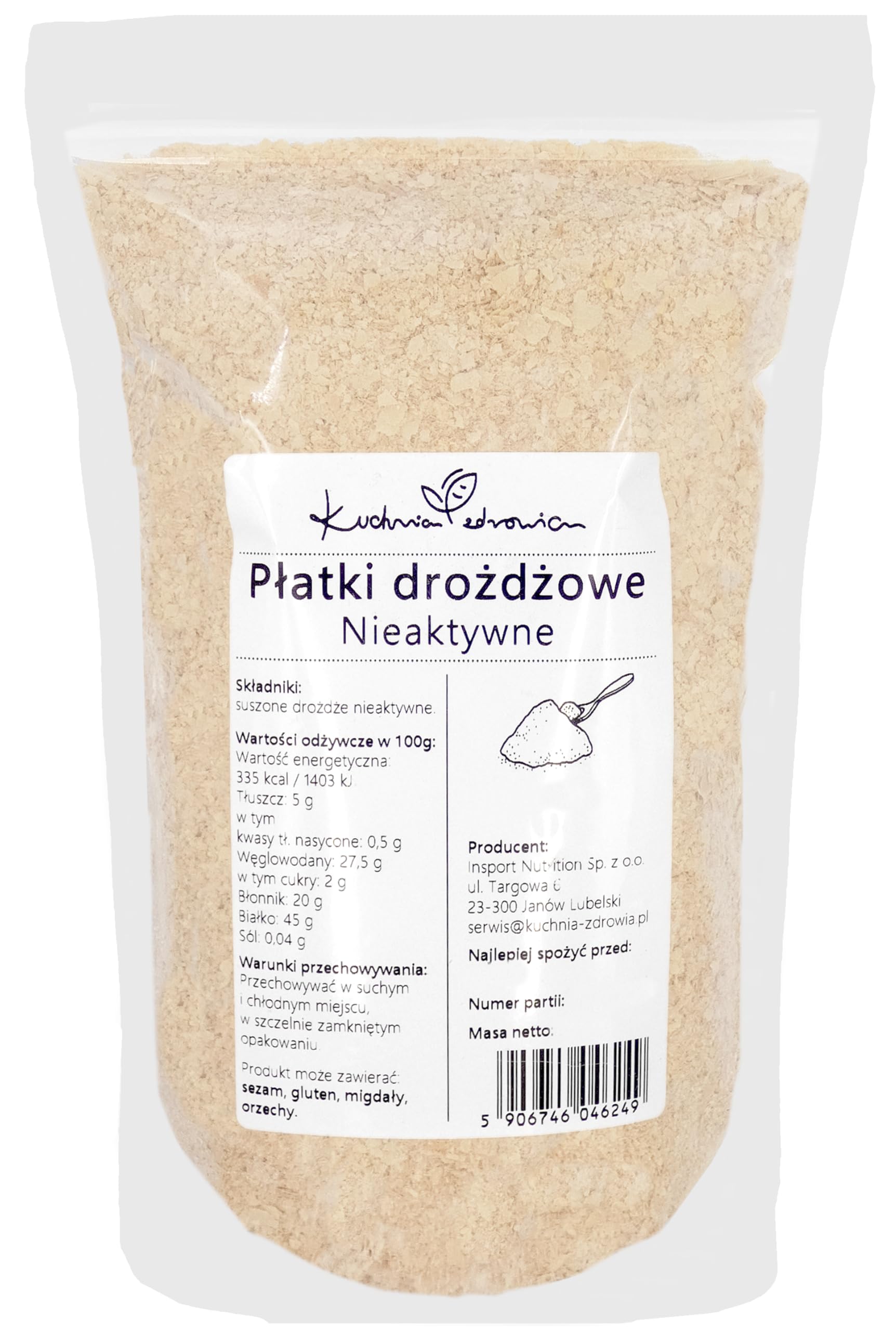 100 Natural Inactive Yeast Flakes – An essential plant-based ingredient with a delicious, slightly cheesy umami flavor. Perfect for enriching your dishes without animal products. High in Protein and Fiber – Contains 45g of protein and 20g of fiber per 100g. Ideal for vegetarians and vegans. Versatile Use – Sprinkle on salads, soups, vegetables, pasta, cooked dishes, or incorporate into sauces, vegan cheeses, gratins, or homemade snacks. Produced without additives or preservatives, made with inactive dried yeast. It does not rise or ferment – it is a nutritious and natural seasoning. ? Packaged in a facility that also handles sesame, almonds, gluten, and tree nuts. store in a cool, dry place away from moisture. KUCHNIA ZDROWIA – Plant-based ingredients for a balanced diet. Ingredients: Inactive dried yeast. Instructions for use: Storage conditions: store in a cool, dry place in a tightly sealed container. Best before: The best before date is indicated on the packaging label. Safety Warning: The following products are also packaged in this facility: sesame, almonds, products containing gluten, various nuts. Although every effort has been made to avoid them, the presence of these raw materials in the product cannot be 100 excluded. See more