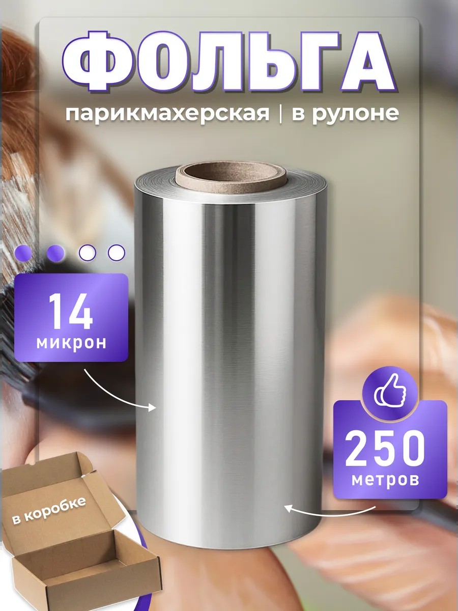 | Комплектация | парикмахерская фольга 250 м, 14 микрон, 1 рулон |