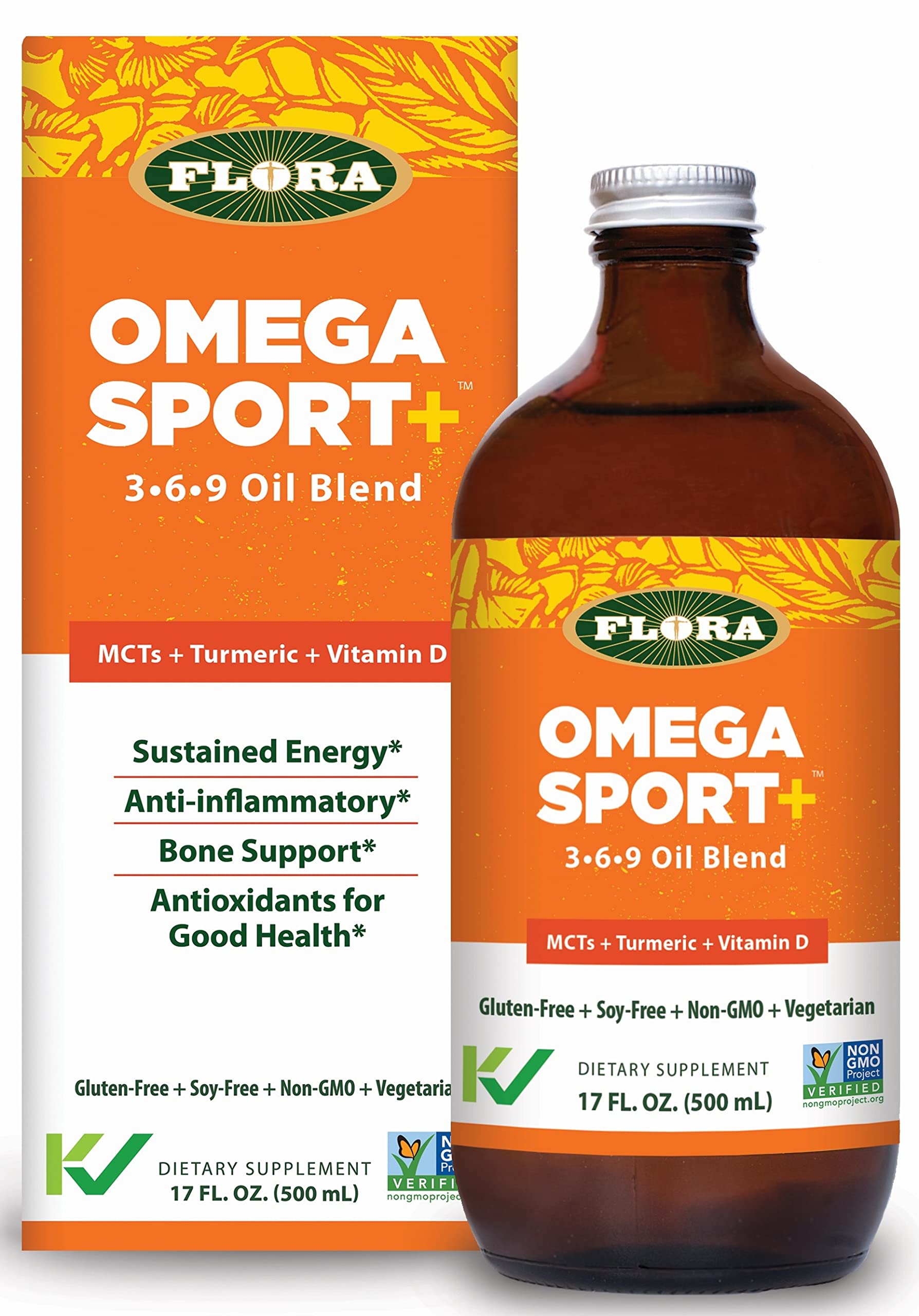 Omega Sport 8.5 oz LiquidOmega Sport, an oil that pushes the boundaries, including omega-3, -6, and -9, plus MCTs, turmeric, and vitamin D. Formulated with both performance and recovery in mind, Omega Sport provides omegas as the foundation for health, MCTs for energy, turmeric for recovery, and vitamin D to support strength and bone health.* This is no ordinary oil blend, this is fuel for your life.Sustained energy*Assistance with a healthy inflammatory response*Powerful antioxidant protection*Strength and bone health from Vitamin D Suggested Use As a dietary supplement Shake well before use. Take 1 tablespoon 3 times daily with food. FOR OPTIMUM FRESHNESS, KEEP REFRIGERATED. - Or as directed by your healthcare professional. Supplement FactsServing Size: 1 TablespoonServings Per Container: 8Amount Per Serving% Daily Value***Calories130Total Fat14 g18%Saturated Fat7 g35%Polyunsaturated Fat5 g*Monounsaturated Fat1.5 g*Vitamin D (cholecalciferol)4.5 mcg23%mefium chain triglycerides (from coconut/palm kernel),flax (seed oil),sunflower (seed)oil,pumpkin (seed) oil,coconut (seed) oil,evening primrose (seed) oil,turmeric (rhizome)extractOmega-3 ALA (alpha-linolenic acid)3g*Omega-6 LA (linoleic acid)1.5 g*Omega-9 (oleic acid)1.5 g* *Daily Value Not Established ***Percent Daily Values are based on a 2,000 calorie diet Other Ingredients: Povidone,sunflower lecithin,rosemary extract,hydroxymethyl cellulose,and mixed tocopherols. Warnings: Keep out of reach of children. As with all dietary supplements, consult your healthcare professional before use. See product label for more information. Security sealed for your protection. Do not use if seal is missing or damaged. Consult a health care practitioner prior to use if you 1) are pregnant or breastfeeding 2) have gallstones or a bile duct obstruction 3) have stomach ulcers or excess stomach acid. *These statements have not been evaluated by the Food and Drug Administration. These products are not intended to diagnose, treat, cure, or prevent any disease.During the summer months products may arrive warm but stores and ships products in accordance with manufacturers' recommendations, when provided. HEALTH BENEFITS - Incorporating this supplement into your diet is a sustainable, plant-based alternative to improve performance, recovery, energy, bone health, and strength support. Made with Vitamin D, turmeric, and medium chain triglycerides to aid muscle contraction/strength, metabolism, and post-work out recovery. A DIVERSE INGREDIENT- Drizzle a spoonful in smoothies, yogurts, oatmeals, salad dressings, and sauces for a warm nutty flavor filled with rich Omega 3-6-9 fatty acids. Omega Sport+ provides: Sustained energy* - Assistance with a healthy inflammatory response* - Powerful antioxidant protection* - Strength and bone health from Vitamin D*. PRESERVING QUALITY- All is conveniently packaged in a resealable amber glass bottle that is protected from air and light while preserving the potency and freshness. From the makers of Udo's Choice Oil. FUEL FOR LIFE - Formulated with both performance and recovery in mind, Omega Sport+ provides omegas as the foundation for health, MCTs for energy, turmeric for recovery, and vitamin D to support strength and bone health.* This is no ordinary oil blend, this is fuel for your life. ALL NATURAL OIL BLEND: Omega Sport+, an oil that pushes the boundaries, including omega-3, -6, and -9, plus MCTs, turmeric, and vitamin D. Great vegetarian alternative to fish oil.