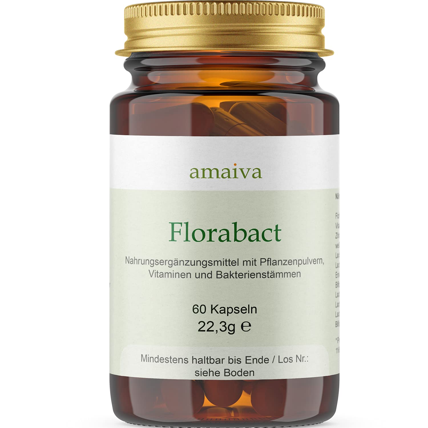 100 natürliche vegane Inhaltsstoffe - ohne chemische Zusätze - hergestellt in Deutschland - ISO 9001 geprüfte Qualität - TÜV Zertifiziert. Magensaft resistente Kapseln verhindern das vorzeitige Auflösen der Inhaltsstoffe. Mit 8 Bakterienkulturen und natürlichen Ballaststoffen wie Flohsamenschalen und Kidneybohnenpulver. ""Florabact"", 60 Kapseln, amaiva Naturprodukte, freiverkäuflich, PZN: 11482568.