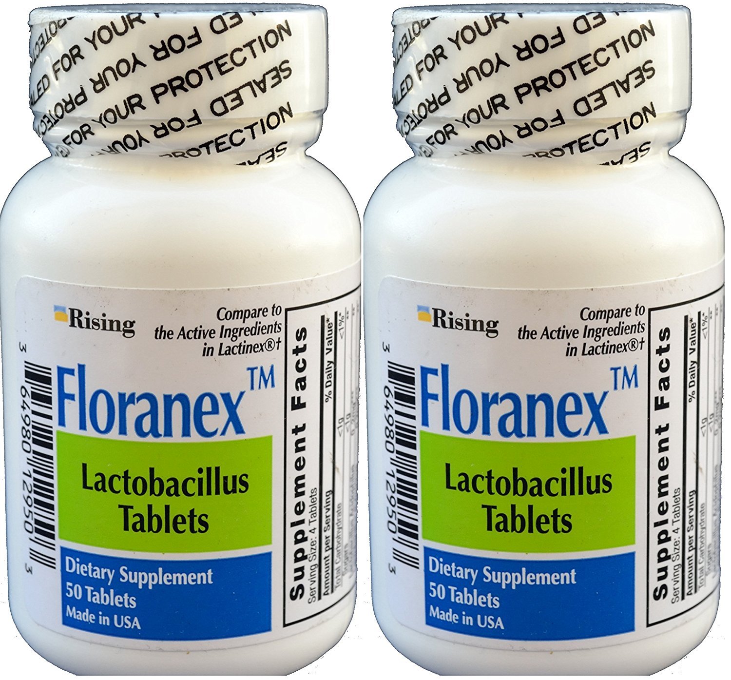 Floranex Probiotic for Colon Health Generic for Lactinex 50 Tablets per Bottle Pack of 2 Total 100 Tablets
