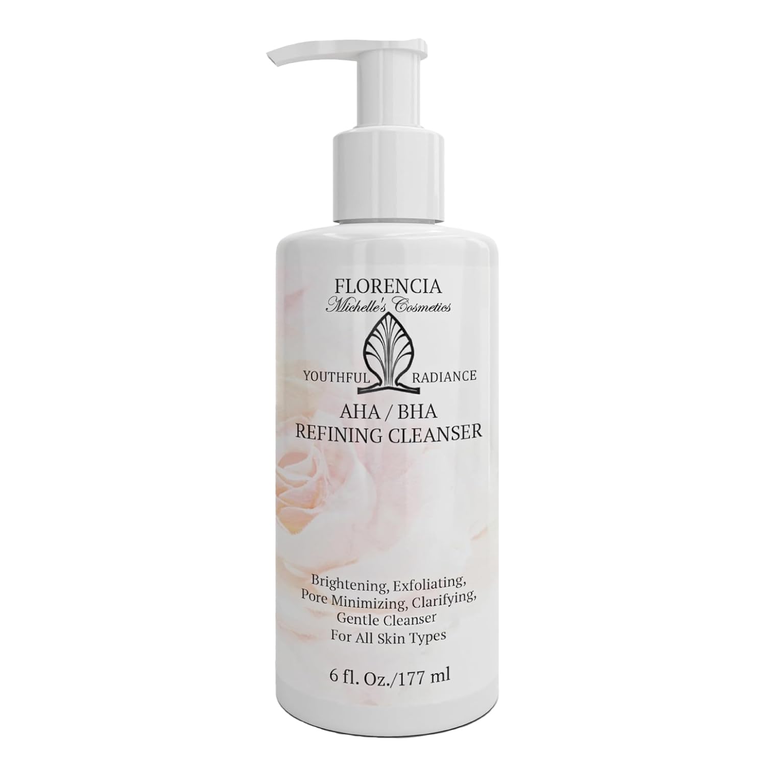 Florencia AHA BHA Refining Cleanser - Gentle Daily Exfoliating Face Wash with Glycolic Salicylic Lactic Acid and Jojoba Beads - Pore Perfecting Facial Cleanser 6 oz