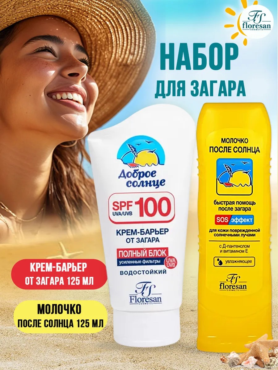 Набор для загара состоит из 2-х продуктов : Крем-барьер от загара с SPF100 полный блок с усиленным комплексом UVA/UVB фильтров эффективно защищает кожу от солнца и борется с пигментацией, вызванной воздействием УФ лучей.Особенно эффективен в случаях с повышенной склонностью к пигментации кожи, с непереносимостью или аллергическими реакциями на солнце. Входящие в состав крема витамин Е и алоэ вера питают и увлажняют кожу, эффективно восстанавливая защитный барьер кожи, подвергшейся инсоляции. Водостойкий.Идеально подходит для использования в высокогорных районах, жарких климатических поясах, а также при длительном пребывании на солнце.