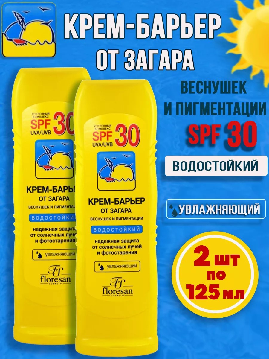 Крем барьер от загара и веснушек SPF30 водостойкий 125мл,2шт