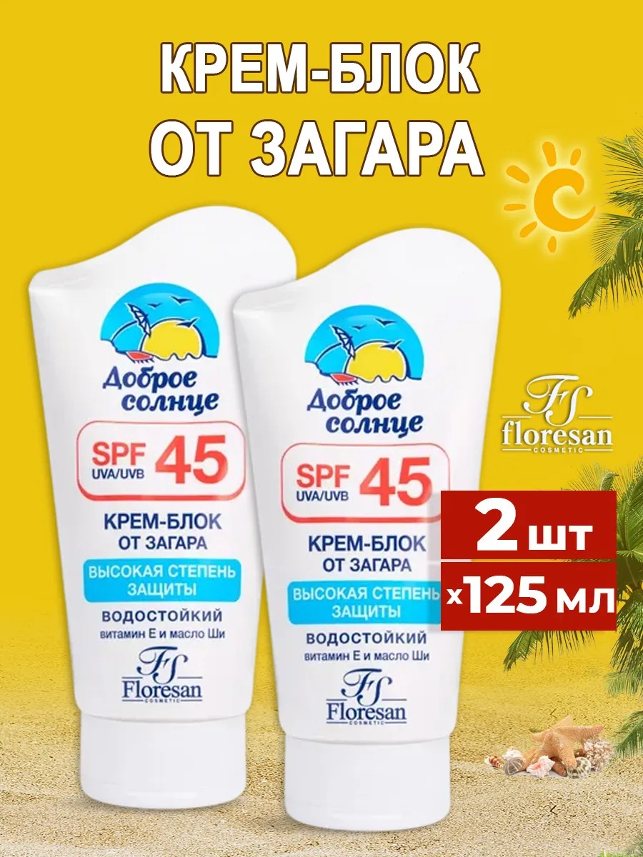 Крем блок от загара водостойкий SPF 45 125мл, 2шт