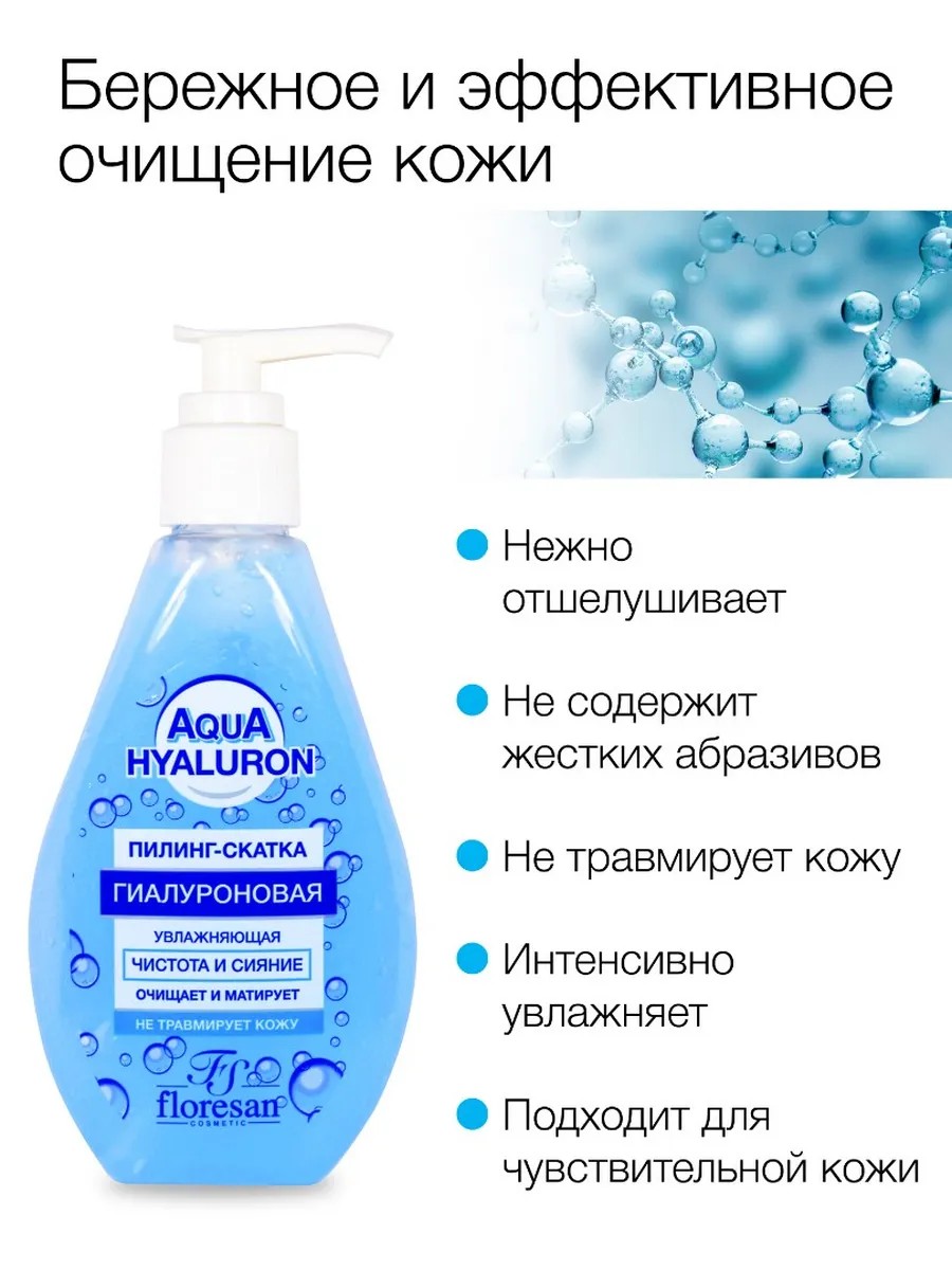 Гиалуроновая пилинг - скатка Aqua Hyaluron не содержит жёстких абразивных частиц, но при этом эффективно отшелушивает отмершие клетки, выравнивая рельеф кожи. Скатка не травмирует и не сушит даже самую нежную кожу, оставляя после применения ощущение свежести, гладкости и чистоты. Комплекс c гиалуроновой кислотой и коллагеном интенсивно увлажняет кожу, восстанавливает её водно-липидный баланс и разглаживает морщинки. Пилинг - скатка не содержит парабенов, спирта и красителей, а потому подходит даже для чувствительной кожи. Результат, как после салонного ухода - Ваше лицо выглядит ухоженным, свежим и сияющим.