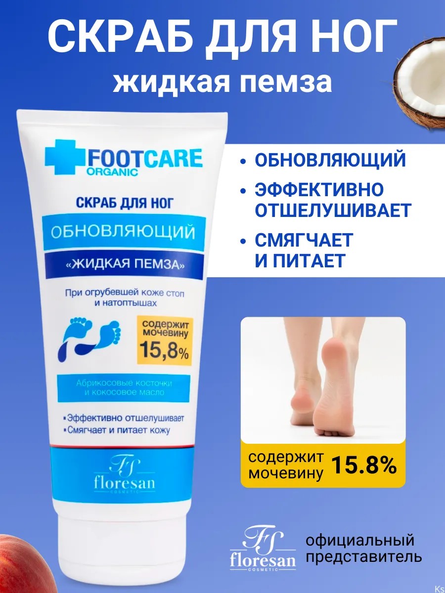 Floresan Скраб для ног Жидкая пемза Organic FOOT CARE