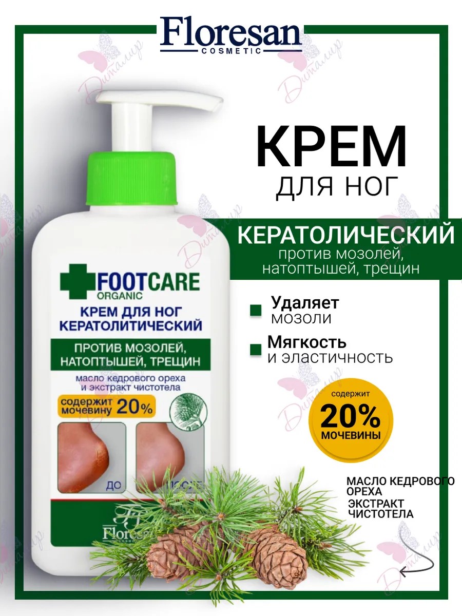 Keratolytic foot cream with celandine extract and cedar nut oil is an effective remedy for corns, cracks, dry calluses, and rough skin on the feet.