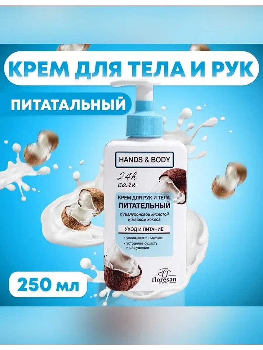 Крем для рук и тела питательный Floresan с кокосом — это идеальное средство для полноценного ухода за кожей. Обогащенный натуральными компонентами, включая кокосовое масло, этот крем интенсивно увлажняет и питает кожу, возвращая ей здоровый и ухоженный вид. Его богатый состав помогает устранить сухость и шелушение, а также предотвращает их повторное появление. Крем эффективно защищает кожу от негативного воздействия окружающей среды, таких как ветер, холод и загрязнения. Благодаря нежному аромату кокоса, он дарит ощущение свежести и ухоженности. Подходит для ухода за кожей рук, тела и ног, обеспечивая комплексный уход. Упаковка объемом 250 мл делает крем удобным для длительного использования, будь то дома или в дороге. Особенно полезен для сухой и чувствительной кожи, но подходит для любого типа. Состав включает воду, жидкий парафин, цетеариловый спирт, мочевину, глицерилстеарат и другие активные компоненты, которые способствуют регенерации и увлажнению кожи. Этот крем станет отличным подарком для женщин, заботящихся о своей коже и желающих подарить себе или близким моменты уюта и заботы.