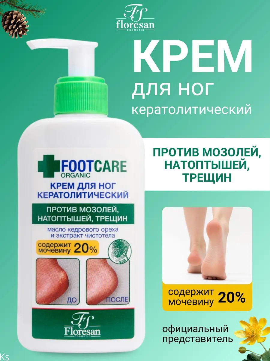 Organic FOOT CARE Keratolytic Foot Cream for Cracked Corns and Rough Skin. This keratolytic foot cream with celandine extract and cedar nut oil is an effective treatment for corns, cracks, dry calluses, and rough skin on your feet.