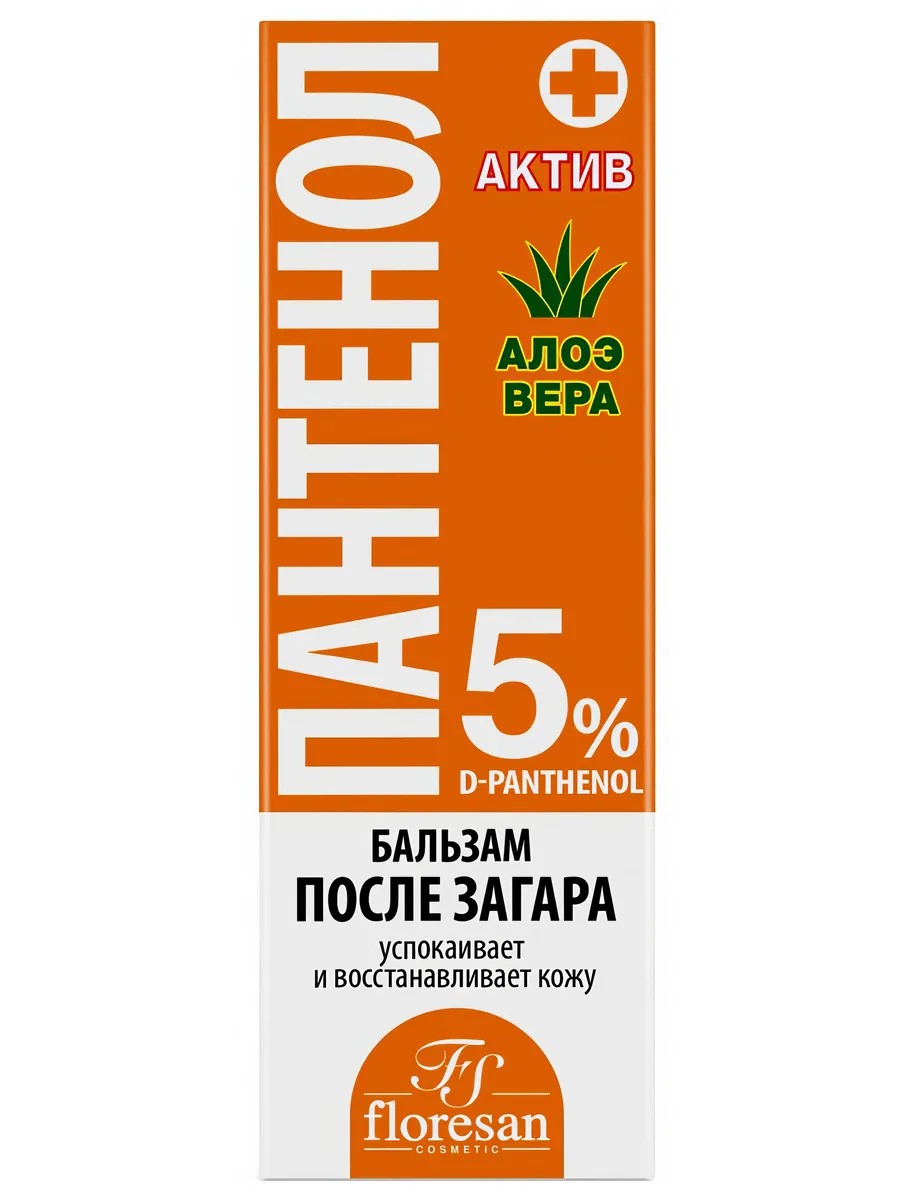 Floresan Panthenol Active After-Sun Balm, Aloe Vera, 100 ml. Thanks to D-panthenol, Panthenol Active Balm promotes skin restoration after intense sun exposure. Aloe vera extract soothes, intensely moisturizes, nourishes, and softens sensitive and damaged skin. Directions: After sun exposure, apply evenly to clean face and body, leaving until completely absorbed. Ingredients: Aqua, Paraffinum Liquidum, Cetearyl Alcohol, Isopropyl Palmitate, Panthenol (D-panthenol), Glycerin, Aloe Barbadensis Extract, Camellia Sinensis Leaf Extract, Vitis Vinifera Seed Oil, Menthol, Propylene Glycol, PEG-40 Hydrogenated Castor Oil, Glyceryl Stearate, Ceteareth-20, Ceteareth-12, Cetyl Palmitate, PEG-100 Stearate, Carbomer, Triethanolamine, Parfum, Phenoxyethanol, Methylparaben, Ethylparaben, Propylparaben, DMDM Hydantoin. Standard: GOST: 31460-2012