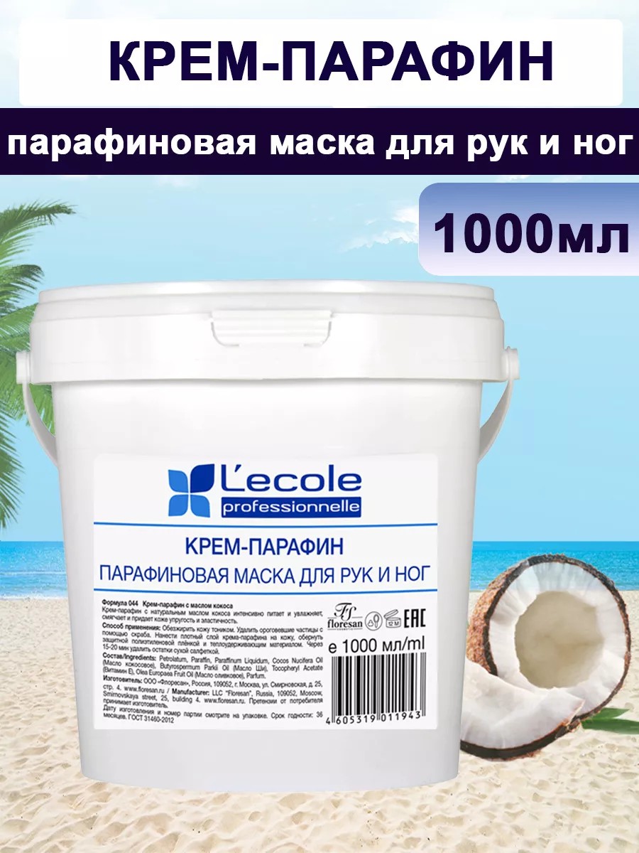 Процедура холодной парафинотерапии обеспечивает бережный и эффективный уход за кожей рук и ног. Крем - парафин косметический с натуральным маслом кокоса интенсивно питает и увлажняет, смягчает и придает коже упругость и эластичность. Оказывает укрепляющее действие на ногти, предотвращает их ломкость, смягчает кутикулу. Является прекрасным завершающим этапом маникюра и/или педикюра. Способ применения: Обезжирить кожу тоником. Удалить ороговевшие частицы с помощью скраба. Нанести плотный слой крема-парафина на кожу, обернуть защитной полиэтиленовой плёнкой и теплоудерживающим материалом. Через 15-20 мин удалить остатки сухой салфеткой. Не смывать! Состав:парафин, вазелин, токоферилацетат, жидкий парафин, Parfum, Butyrospermum Parkii Oil, olea europaea fruit oil, COCOS NUCIFERA OIL.