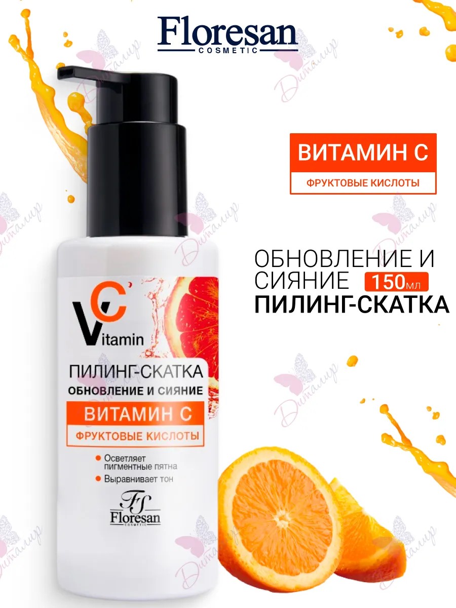 Усиливающая сияние и ровный тон кожи пилинг-скатка с фруктовыми кислотами и витамином С, эффективно устраняет шелушения кожи, очищает кожу от загрязнений, излишков кожного жира и ороговевших клеток эпидермиса, очищая поры и предотвращая появление черных точек. Витамин С восстанавливает защитную функцию кожи, оказывает тонизирующий эффект, предотвращая дряблость кожи, защищает от вредного воздействия свободных радикалов, корректирует признаки старения.