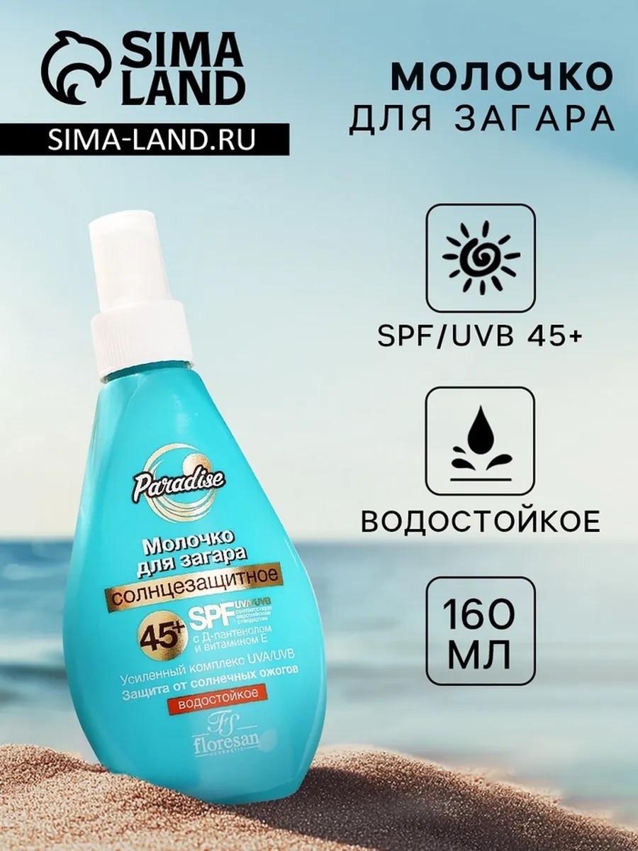 Солнцезащитное молочко для загара водостойкое SPF 45+