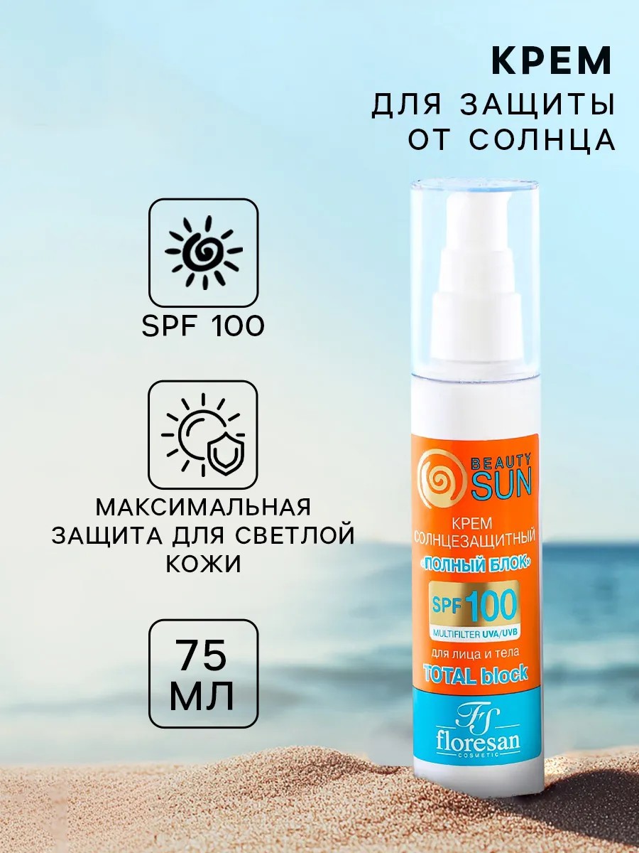 Солнцезащитный крем Floresan Beauty Sun "Полный блок", SPF 100 , 75 мл.