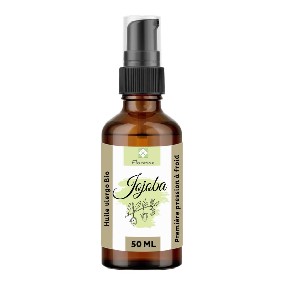 FLORESSE - Jojoba Vegetable Oil - Organic - 100 pure and natural - 50 mlFloresse is a French brand specializing in aromatherapy and flower therapy. We pride ourselves on offering only products of exceptional quality. OUR GUARANTEES: This plant oil is rigorously selected by our experts to guarantee unparalleled quality and ensure its effectiveness. It is packaged in our Toulon facilities in a glass bottle with a cream spray for easier use. ALL HAIR TYPES: DRY, OILY, BRITTLE, STRAIGHT, CURLY: Jojoba oil softens and revitalizes hair. It adds suppleness and shine to define the curls of wavy and curly hair. This jojoba oil is easy to rinse and can be applied from scalp to ends, regardless of hair type. Jojoba is an ideal hair oil. HYDRATES, REGULATES, SOFTENS: Organic jojoba oil has multiple benefits for all skin types, face and body, as well as scalps. Organic jojoba softens and hydrates dry skin and scalps, including those with dandruff. It's a firming and smoothing dry oil for the body and face. It strengthens the skin's barrier without leaving a greasy finish, as it's a dry oil. Its neutral scent makes it a perfect plant-based base for homemade blends and cosmetics. OILY, DRY SKIN: This non-comedogenic oil is suitable for all skin types. It regulates sebum production, helping to combat blemishes and irritations associated with both dry and oily skin. Rich in unsaturated fatty acids, jojoba protects and prevents dryness by regulating the skin's natural balance. It's a softening, anti-aging oil. Pure jojoba oil is nourishing.FLORESSE - Huile Végétale de JOJOBA - Bio - 100 pure et naturelle - 50 mlDESCRIPTION DU PRODUIT FLORESSE - Huile Végétale de JOJOBA - Bio - 100 pure et naturelle - 50 mlFloresse est une marque Française, spécialisée en aromathérapie et Floritherapie. Nous mettons un point d'honneur à ne proposer que des produits d'une qualité exceptionnelle. NOS GARANTIES : Cette huile végétale est sélectionnée rigoureusement par nos experts pour vous garantir une qualité incomparable et assurer son efficacité. Elle est conditionnée dans nos locaux à Toulon dans un flacon en verre muni d'un SPRAY CREME pour une utilisation plus facile. TOUS TYPE DE CHEVEUX SECS, GRAS, CASSANTS, LISSES, FRISÉS : L'huile de jojoba pour les cheveux adoucit et revitalise. Elle apporte souplesse et brillance pour dessiner les boucles des cheveux ondulés et frisés. Cette cire de jojoba est facile à rincer et s'applique du cuir chevelu aux pointes, quelle que soit leur nature. Le jojoba est une huile pour cheveux idéale. HYDRATE, RÉGULE, ADOUCIT : L'huile de jojoba bio a une action multiple sur tout type de peaux, visage et corps mais également les cuirs chevelus. Le jojoba bio adoucit et hydrate les peaux et cuirs chevelus secs, avec pellicule. C'est une huile sèche raffermissante et lissante pour le corps et le visage. Elle renforce le film de la peau sans fini gras, car c'est une huile sèche. Son odeur neutre en fait une parfaite base végétale pour les mélanges et cosmétiques maison. PEAU GRASSE, SÈCHE : l'huile non comédogène pour tous les types de peaux. Elle régule le sébum des peaux, actif sur les boutons et les irritations dues aux peaux sèches ou peaux grasses. Riche en acide gras non saturé le jojoba protège et préserve du dessèchement en régulant la peau. C'est ainsi une huile anti-âge adoucissante. L'huile de jojoba pure est nourrissante.