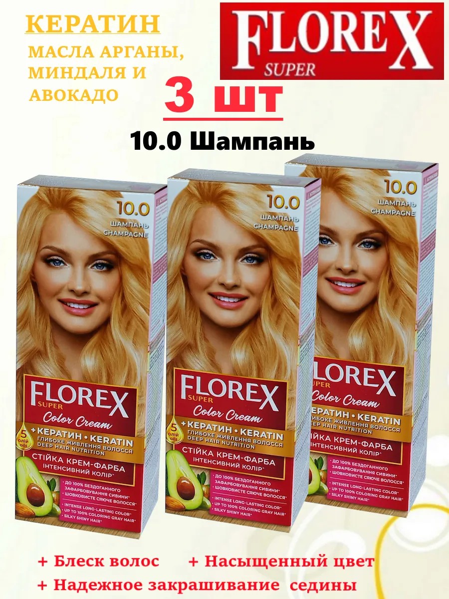Florex Краска для волос ФЛОРЕКС 10.0 ШАМПАНЬ (3 уп)