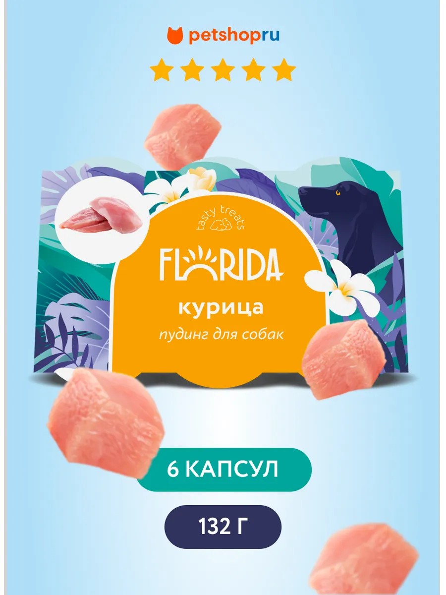Благодаря мягкой и нежной текстуре, пудинг Florida удобно будет есть как щенкам, так и взрослым собакам. Такое лакомство является отличным источником влаги, если ваша собака неохотно потребляет необходимое количество жидкости. Вы можете использовать его в качестве поощрения или просто в качестве дополнения к основному рациону.