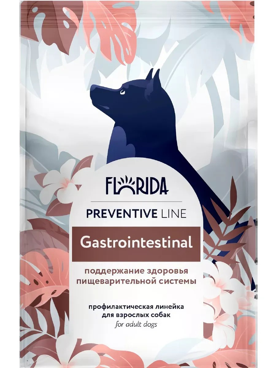 Florida Preventive Line Gastrointestinal Dog Food for Digestive Health, 2 kg. Florida Preventive Line is a line of preventative foods for pets with different nutritional needs. Florida Preventive Line diets contain the nutrients necessary to maintain health and prevent the development of various diseases in adult cats and dogs. The Florida Preventive Line combines natural benefits with modern technology. It is produced using high-quality meat and natural plant ingredients, grown and harvested by hand in ecologically clean areas of Russia. We recommend consulting a veterinarian before using this food. Florida Preventive Line Gastrointestinal is a complete, balanced dog food designed to support healthy gastrointestinal tract function. Easily digestible proteins and a high fiber content promote easy digestion and normal intestinal motility. Jerusalem artichoke is a natural prebiotic that helps restore normal microflora. Milk thistle is a powerful natural antioxidant that neutralizes free radicals. Chamomile has an anti-inflammatory effect. Yucca schidigera helps suppress opportunistic intestinal microflora and reduce fecal odor. Ingredients: dehydrated chicken meat 26%, rice, corn, chicken fat (7%), fermented protein, natural flavor additive, vitamin and mineral complex, dehydrated whole eggs, fish oil, beet pulp, Jerusalem artichoke (prebiotic), DL-methionine (2000 mg/kg), chamomile, milk thistle, Yucca schidigera extract (500 mg/kg), antioxidant. Nutritional value per 100 g: Protein 27% Fat 14% Fiber 2.4% Ash 5% Moisture 9% Calcium 0.65% Phosphorus 0.5% Magnesium 0.06% Sodium 0.3% Potassium 0.6% Copper 24 mg/kg Zinc 190 mg/kg Iron 60 mg/kg Iodine 4 mg/kg Carbohydrates 42% Vitamin A 16,000 IU/kg Vitamin D 1,500 IU/kg Vitamin E 220 mg/kg Omega-3 0.32% Omega-6 2.5% Energy value per 100 g: 391 kcal. Storage conditions: from -18 to +30 C and relative humidity of no more than 85%. Shelf life: 18 months from the date of manufacture, subject to storage conditions. Feeding recommendations: Transition from the previous diet gradually, in small portions over 5-7 days. Feeding recommendations may vary depending on the age, condition, activity, and living conditions of the animal. The pet should always have access to fresh drinking water. Pet weight, kg Daily intake, grams 2 54 5 107 10 180 15 244 25 357 35 460 45 555 60 689 70 774 70 774 + 35 g / 5 kg of weight