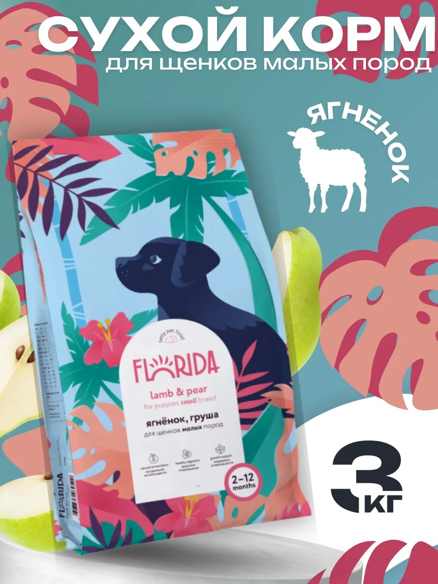 Особенности:Florida Lamb and Pear - сухой корм супер-премиум класса с ягнёнком и грушей для щенков малых пород. Сбалансированное полнорационное питание, способствующее правильному развитию щенка