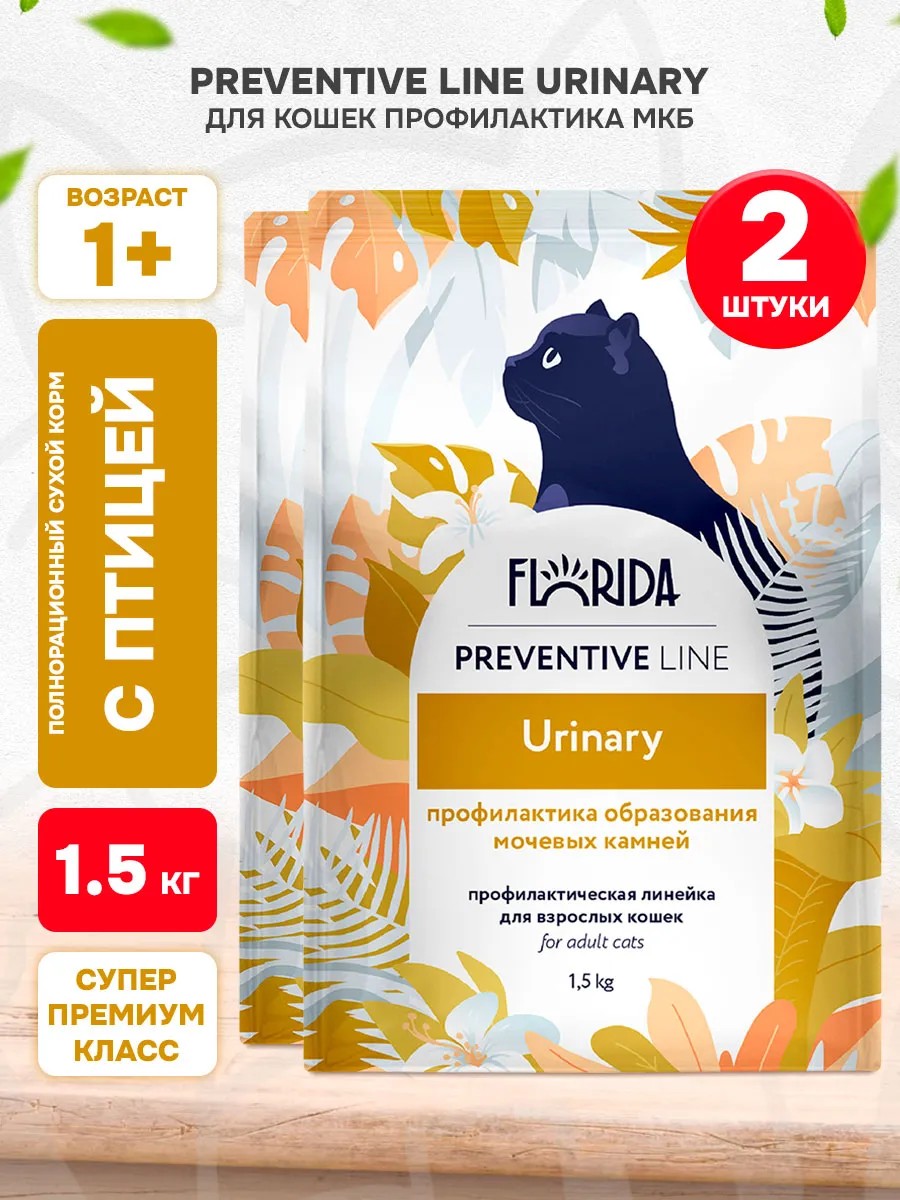 FLORIDA Корм сухой Urinary для кошек Уринари 1,5 кг 2 шт