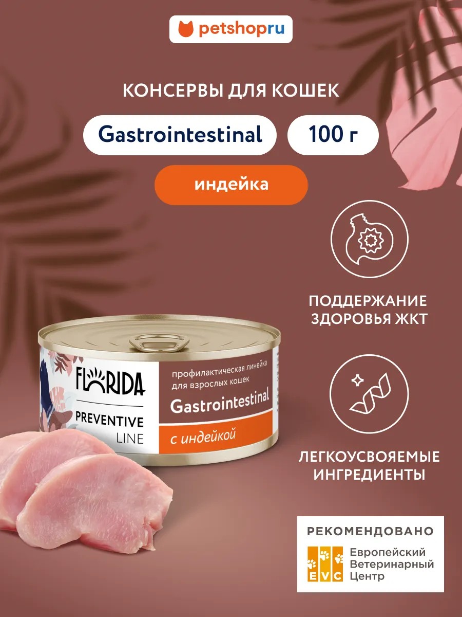 Florida Gastrointestinal консервы для кошек, с индейкой, 100 г